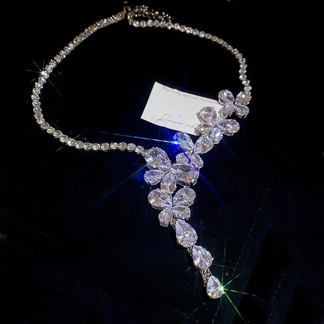 ■素材 合金 ラインストーン ■カラー シルバー ■ディテール ネックレス&ピアスセット/コスチュームジュエリー/ネックレスクロージャー:チェーンアジャスター