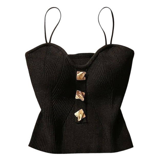 ■実寸 身幅 S31cm/M33cm 着丈 S41cm/M43cm ■素材 ポルエステル ■カラー 2Color ■ディテール ストレッチ/ニットキャミソール/リブ/メタル装飾/薄手/パッドは入っておりません。