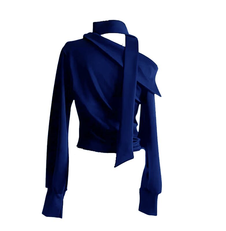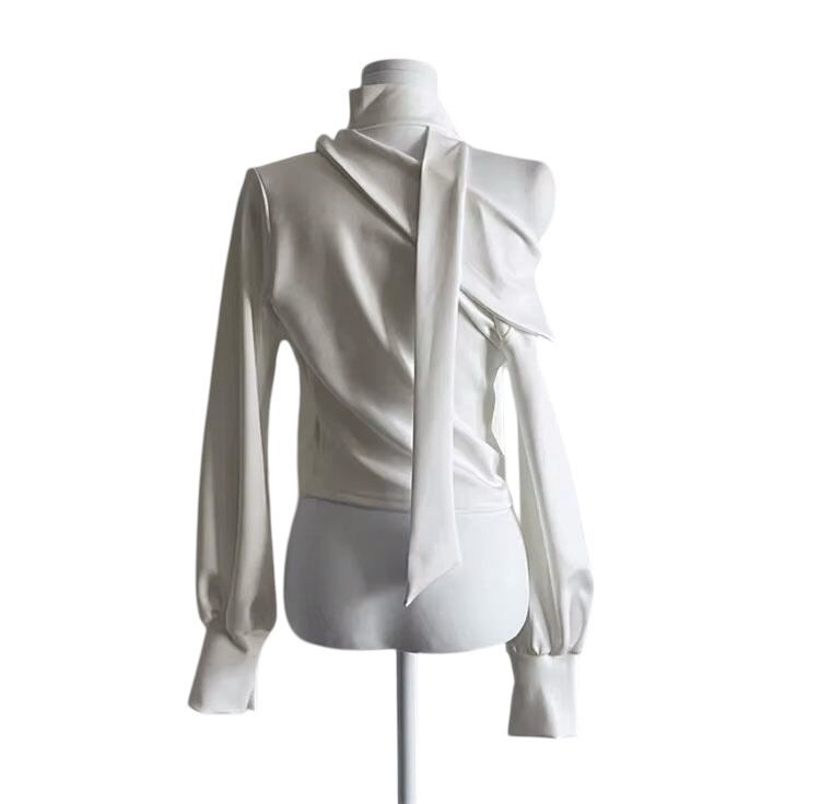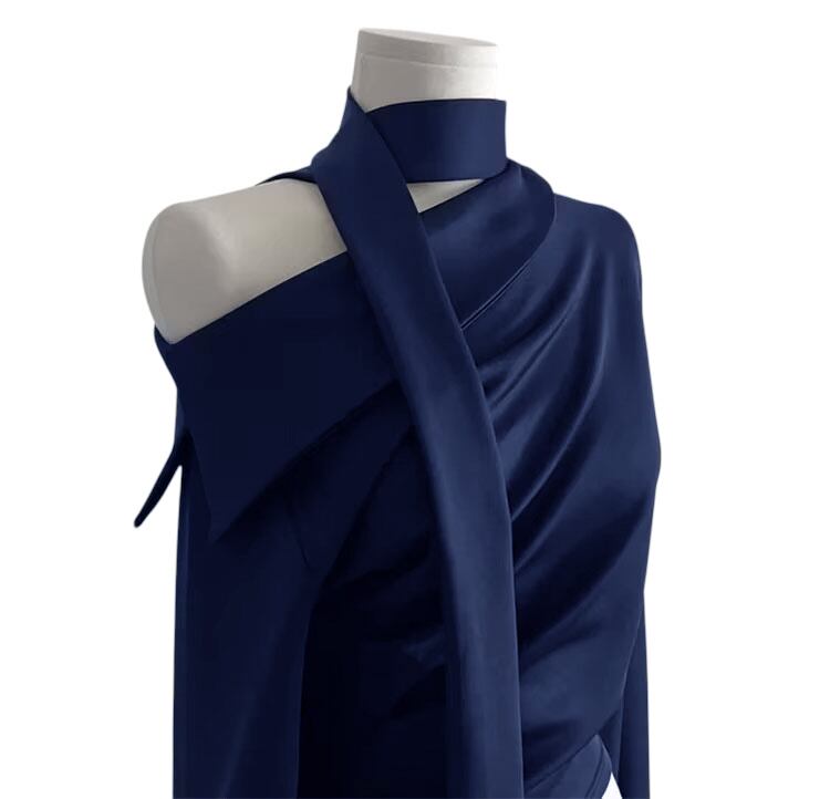 ■ディテール オフショルダー/サイドタック/ロングカフ/ストレッチ/ストール/アシンメトリー/サテン