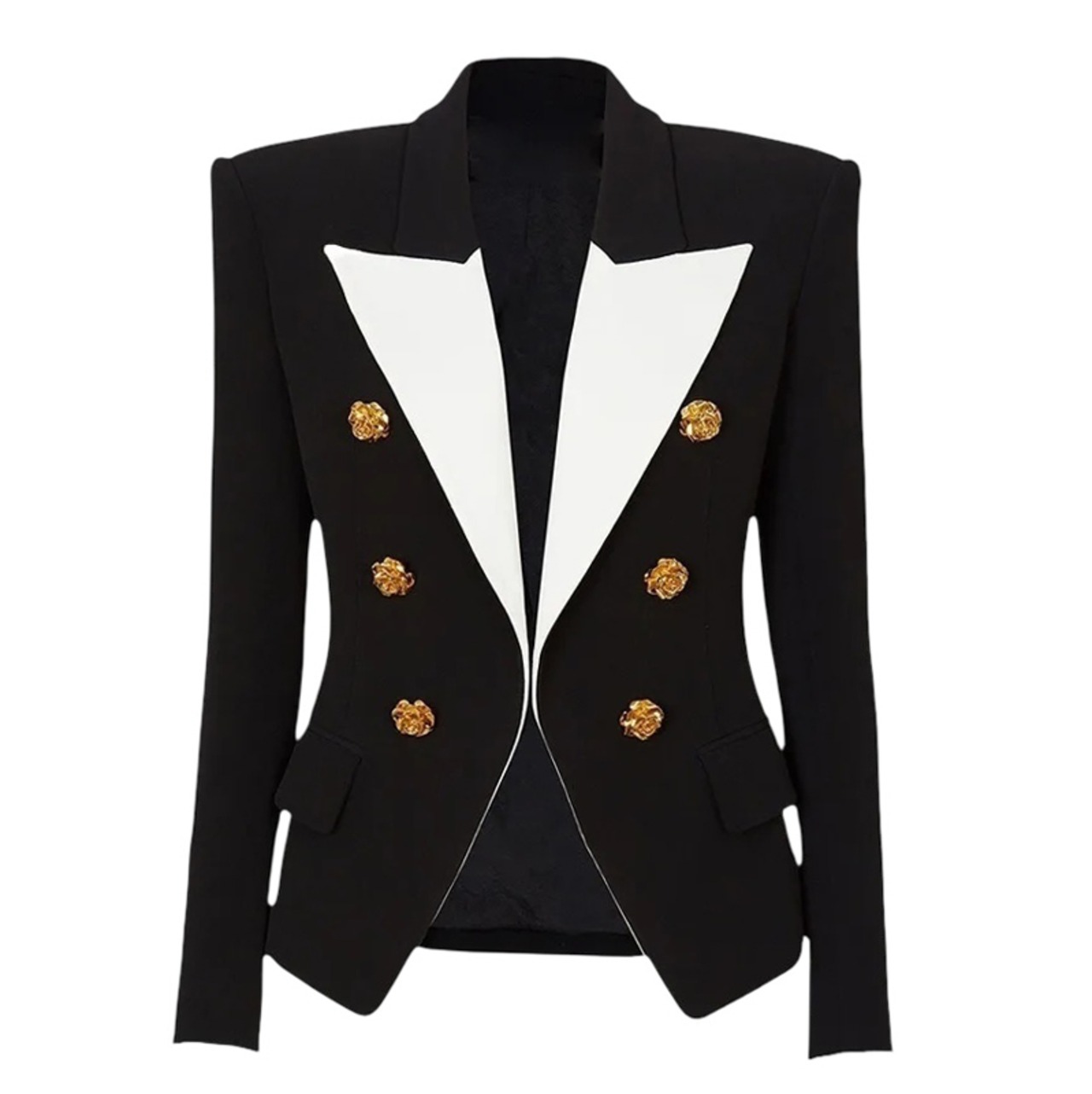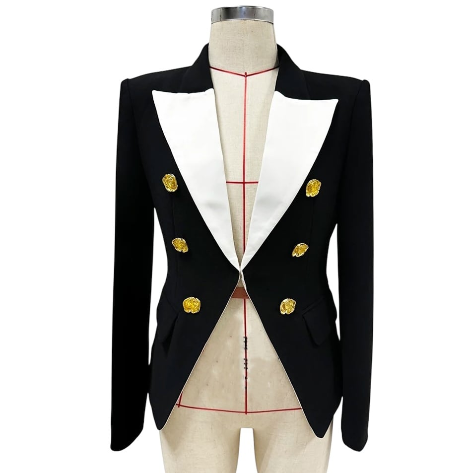 ■ディテール テーラードジャケット/配色/サテンカラー/ゴールドボタン/クロージャー:ホック