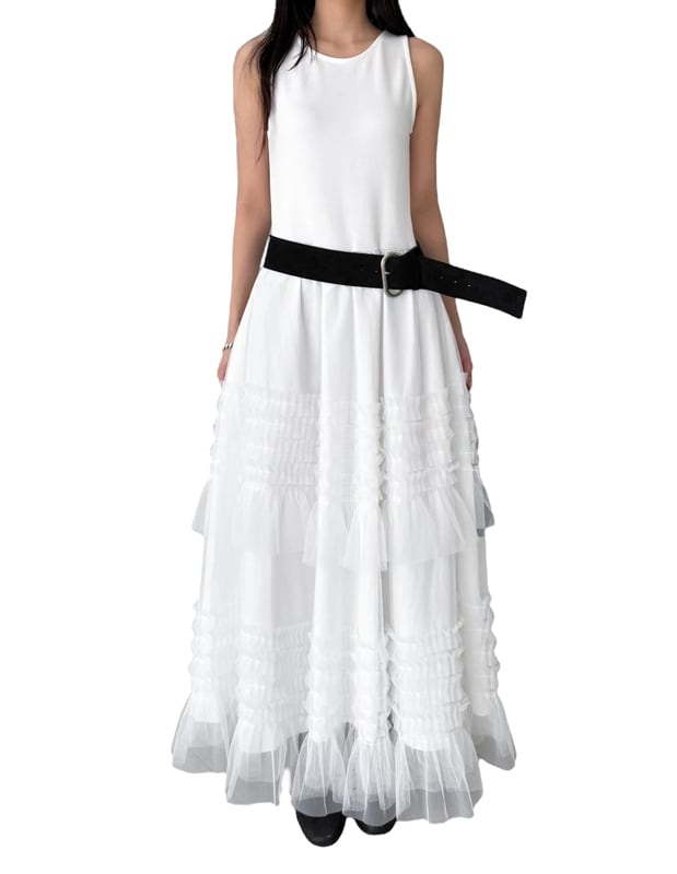 ■ディテール チュールスカート/ソフトタッチのジャージーカットソー/ドッキングワンピース/プルオーバー