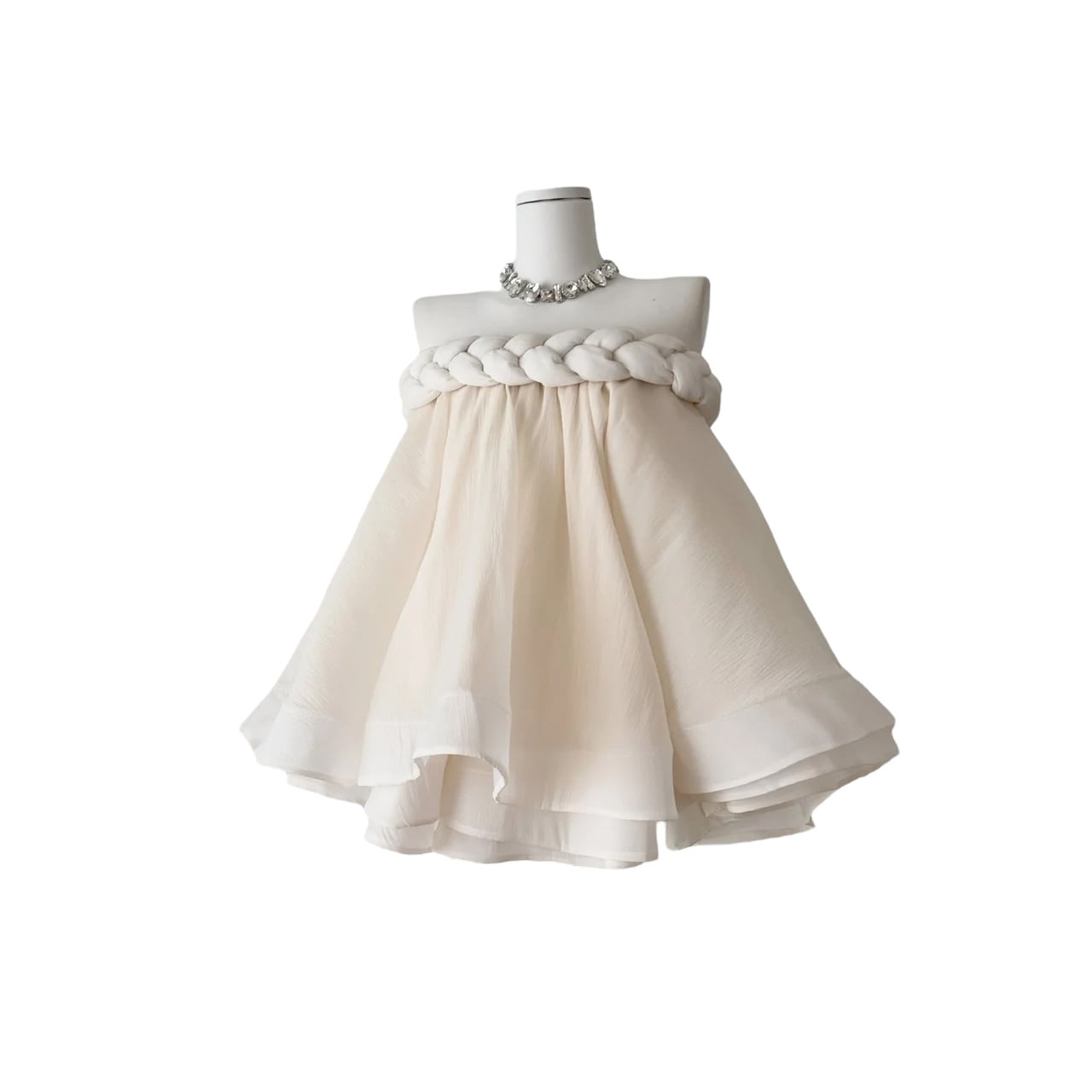■ディテール ベアトップ/3層/ロープトリム/ボリュームシルエット/ジッパー