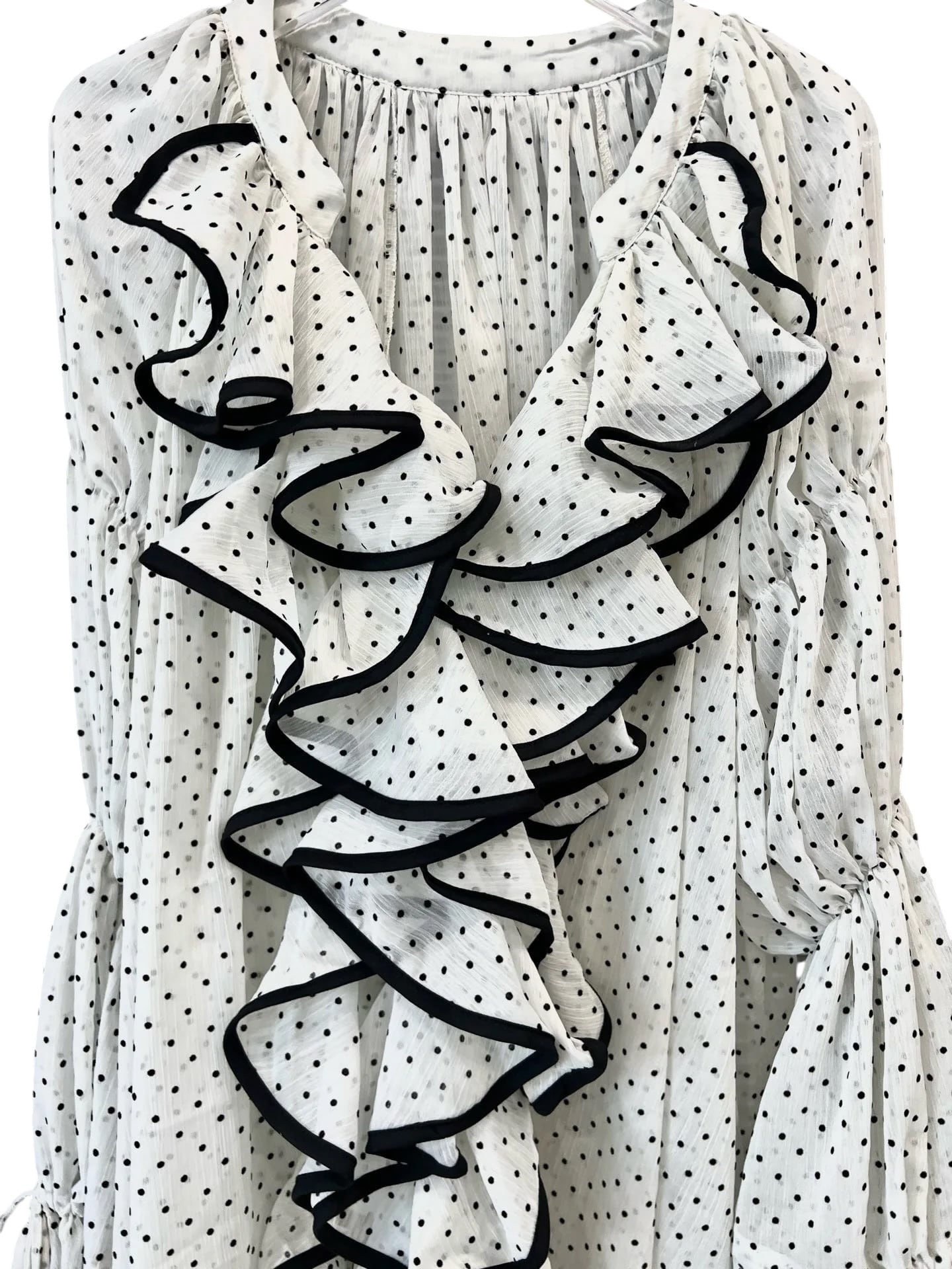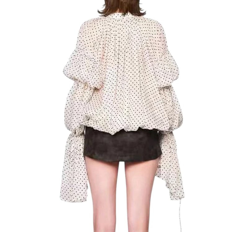 ■ディテール シフォン/ボリュームスリーブ/袖にゴムのギャザー・ドローストリングス/ラッフル/ワイドフィット