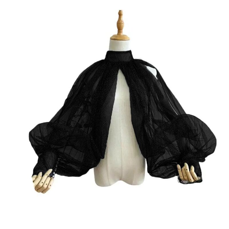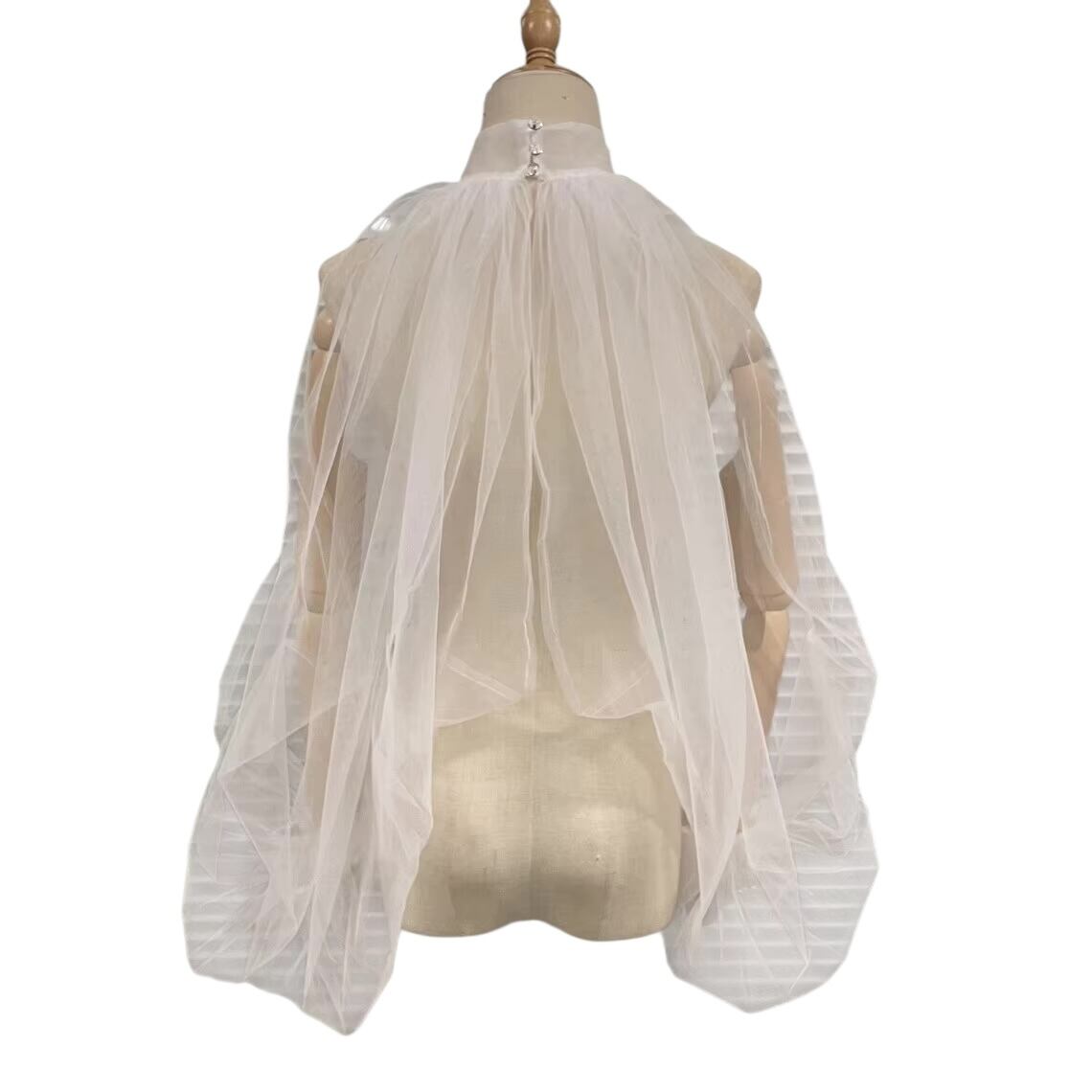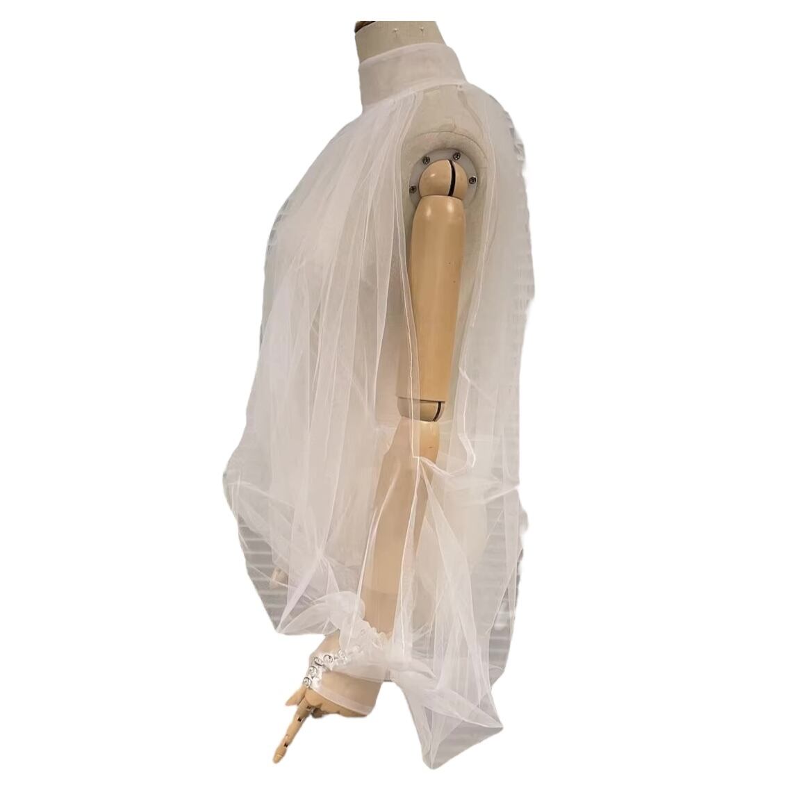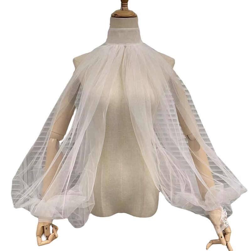 プルオーバー/スタンドカラー/ボタン/スーパーボリュームスリーブ/メッシュチュール/身頃なし