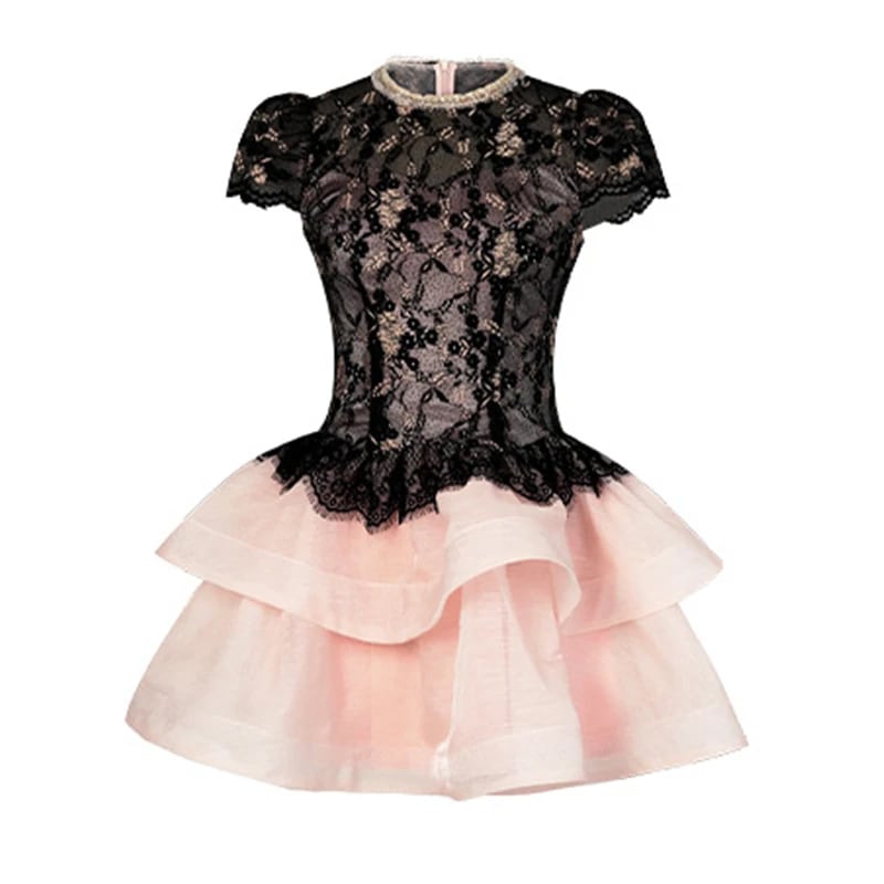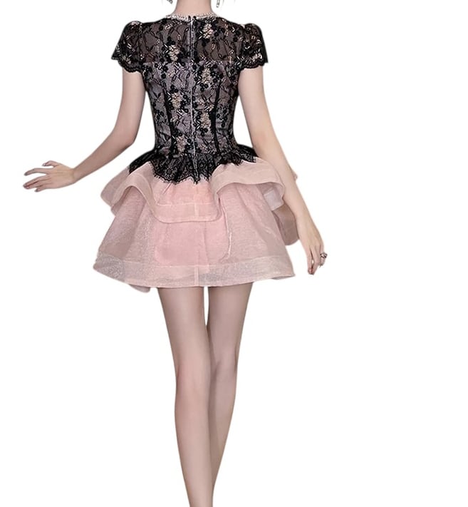 ■ディテール ミニドレス/パフスリーブ/レース/ティアードラッフル/裏地あり