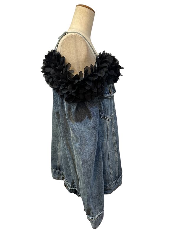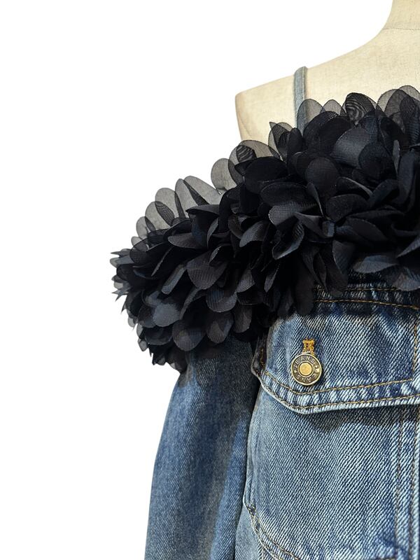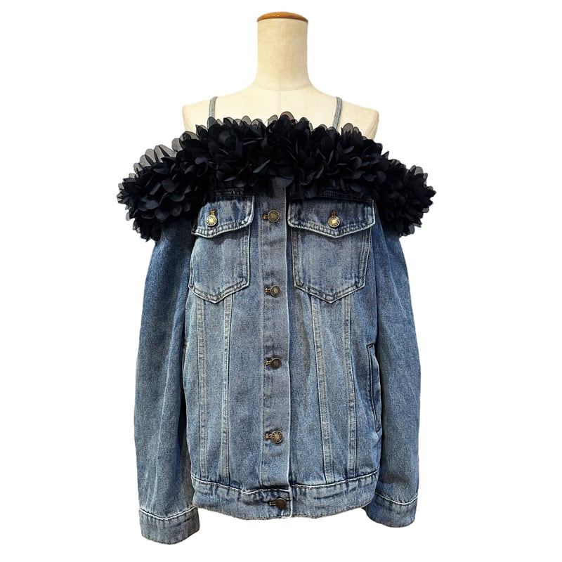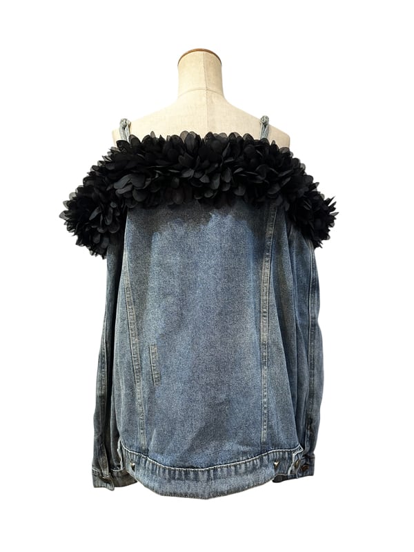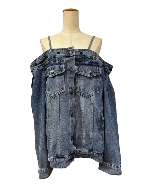 ■ディテール デニムジャケット/オフショルダー/ラッフル(取り外し可能)ワイドフィット