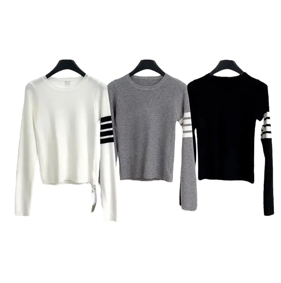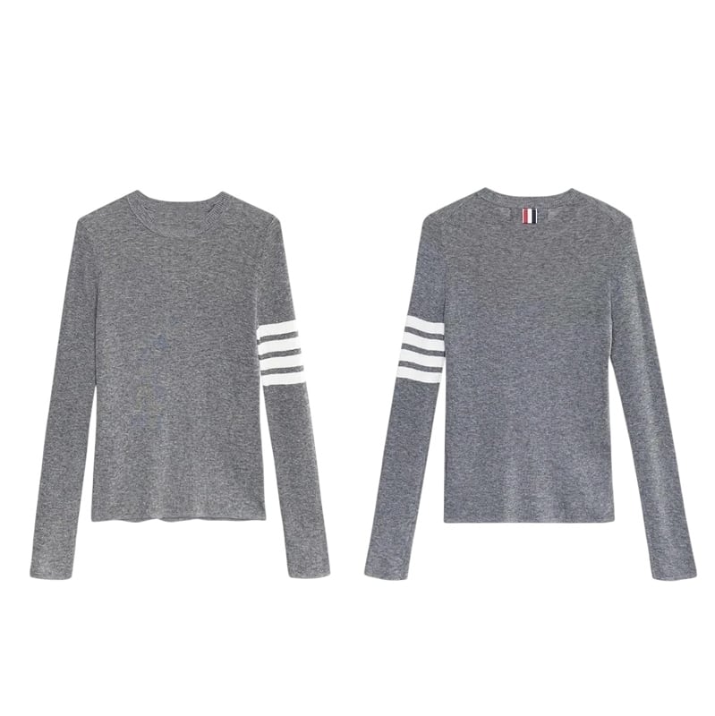 ■ディテール クルーネック/ストレッチ/袖にライン/プルオーバー/トリコロールリボン