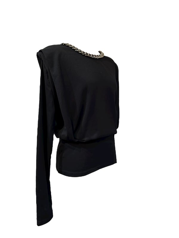 ■ディテール 厚手カットソー/チェーントリム/プルオーバー/パワーショルダー/ウエストシェイプ