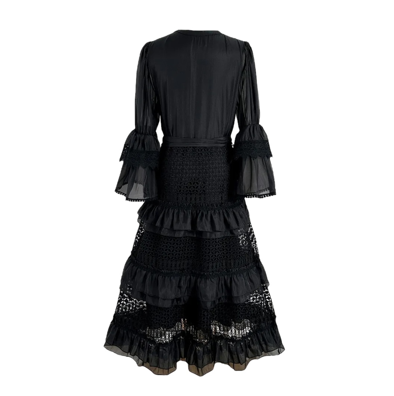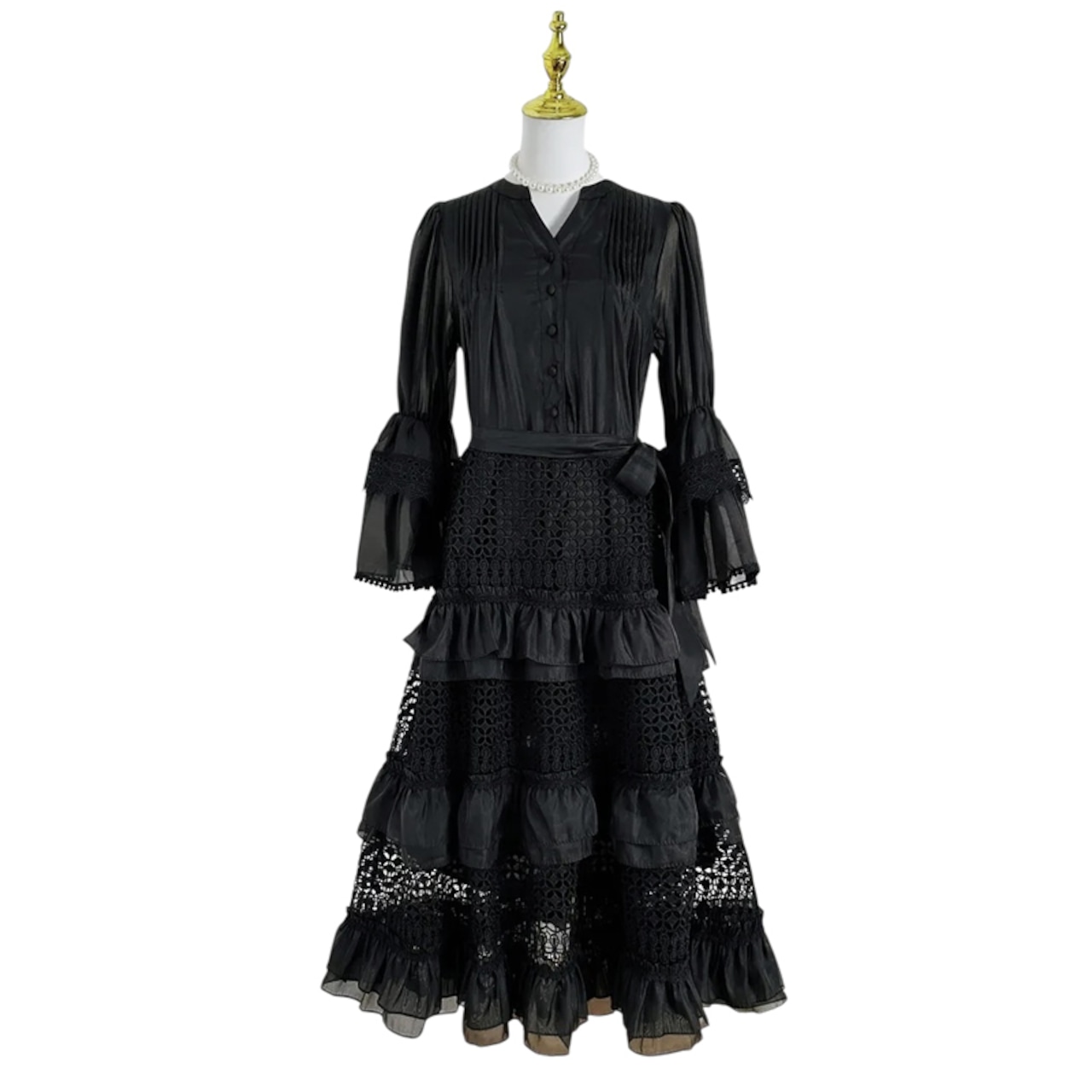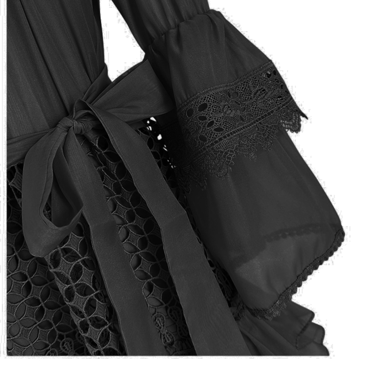 ■ディテール Vネック/メタリックシフォン /カットアウトレース/ベルスリーブ/ティアード