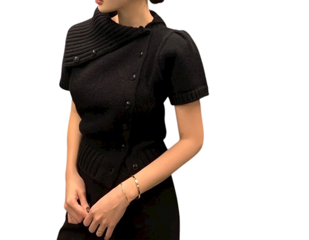 ■ディテール 厚手ニット/リブカラー/タートルネック/パフスリーブ