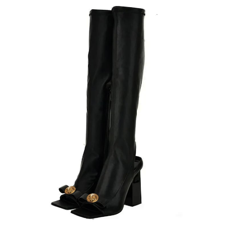 ■ディテール サンダル /ストレッチ/サテン/サイドジッパー/ブロックヒール