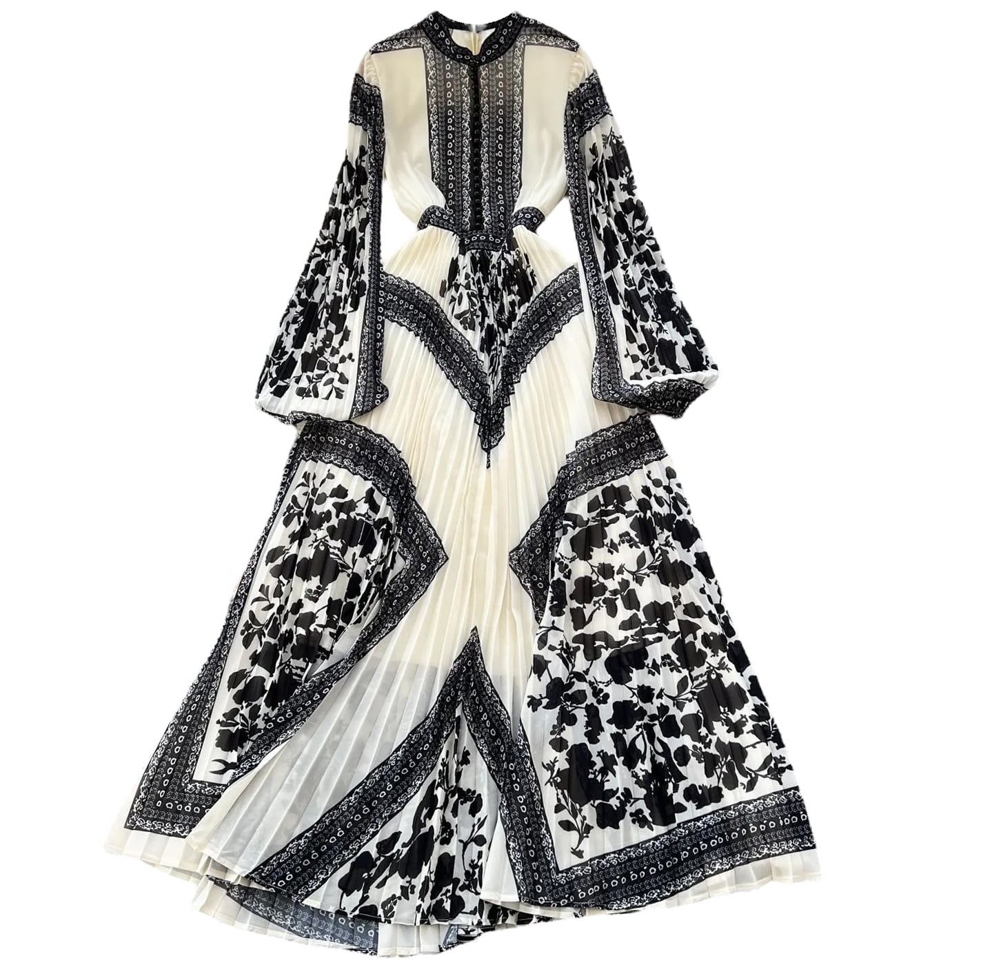 ■ディテール スタンドカラー/プリーツ/ロング/ジッパー/裏地