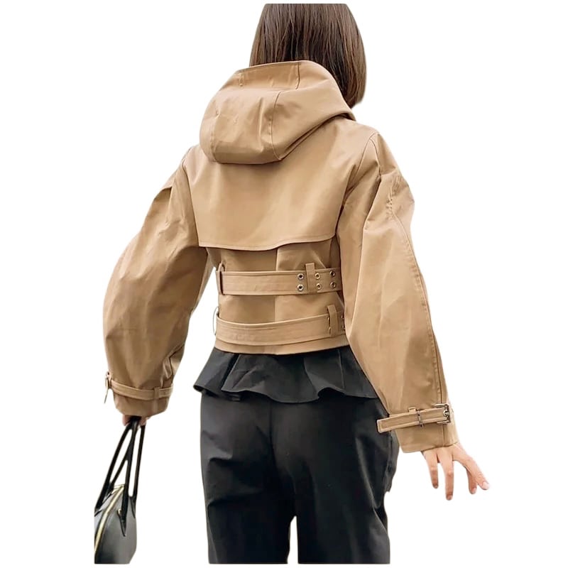 ■ディテール トレンチ/ダブルベルト/ボリュームスリーブ/フーディ