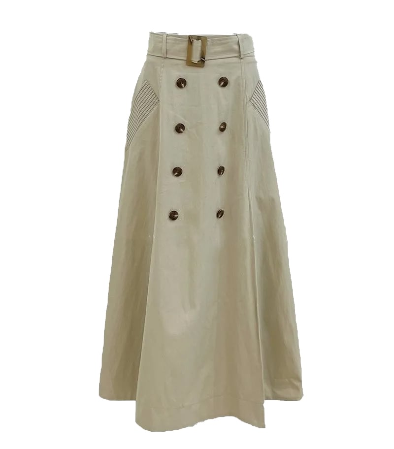 ■ディテール フレア/トレンチ/後ろウエストゴムのギャザー/サイドジッパー/裏地あり/ベルト