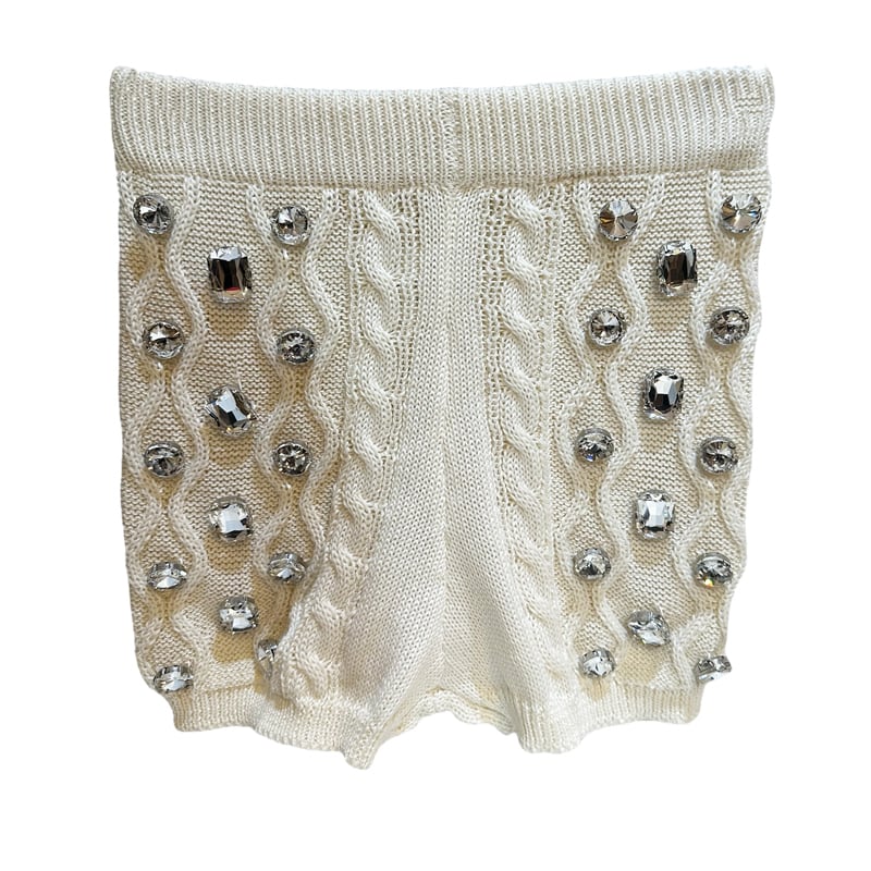 ■ディテール ニットショーツ/ビジュー/プルオン/ケーブルニット/タイトフィット