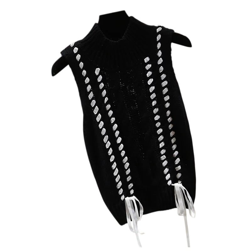 ■ディテール ケーブルニット/モックネック/スリーブレス/レースアップ/ベルベットリボン