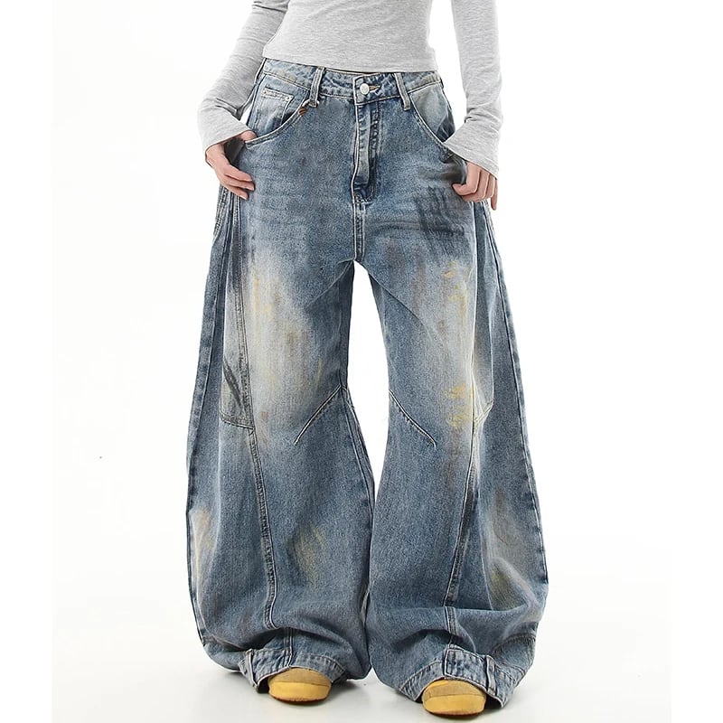 ■ディテール ワイドレッグ/ペイント加工/裾にベルトループ/5ポケット/ジッパーフライ/ソフト