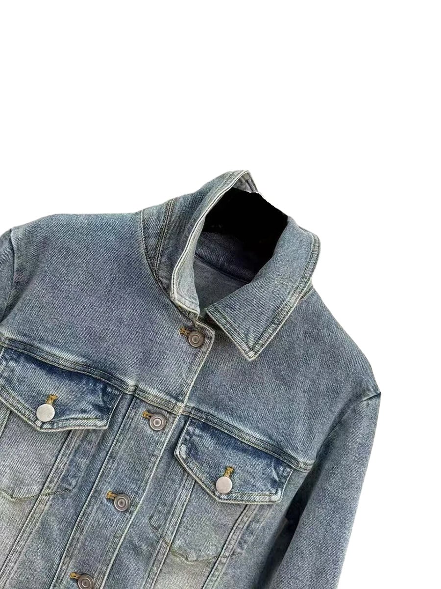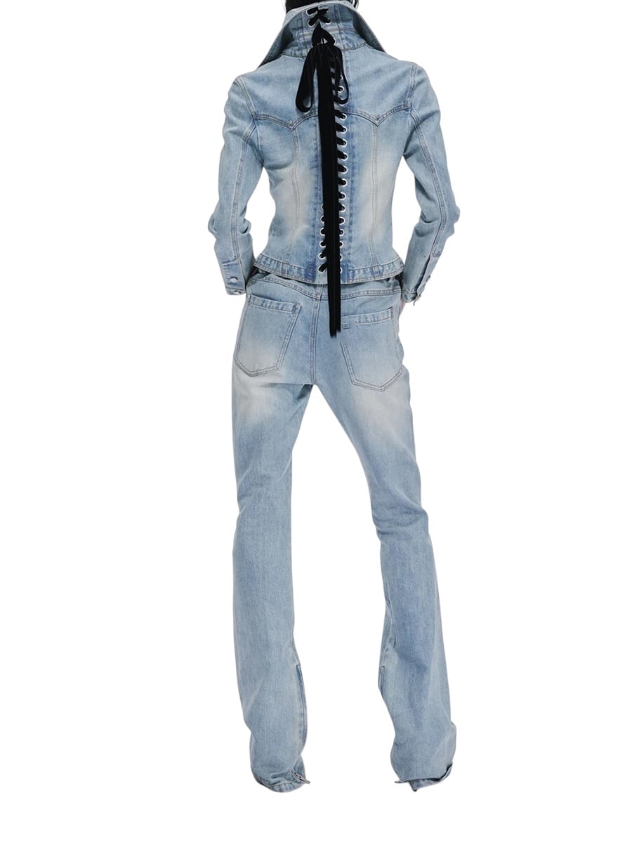 ■ディテール デニムジャケット/背中レースアップ/ベロアリボン/ポケット