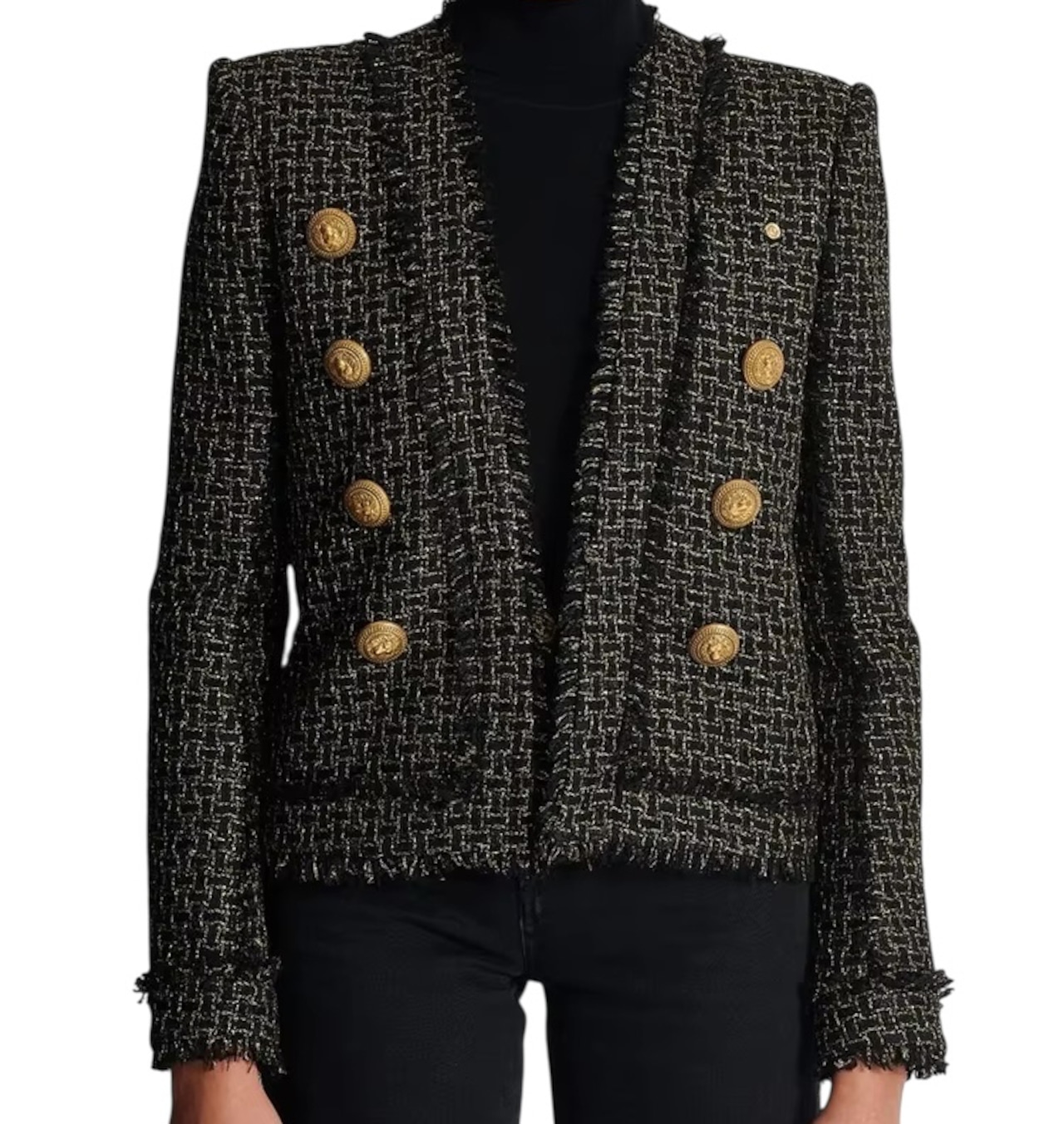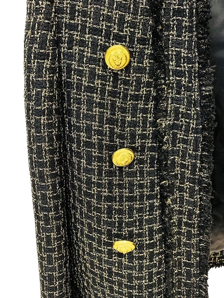 ■ディテール ツイードジャケット/ゴールドスレッド/フリンジトリム/クロージャー無し/裏地