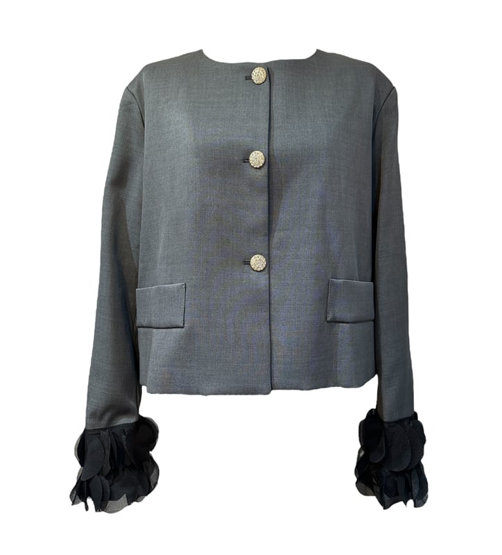 ■ディテール カラーレス/ビジューボタン/スカラップフリル/スーツ生地/裏地あり