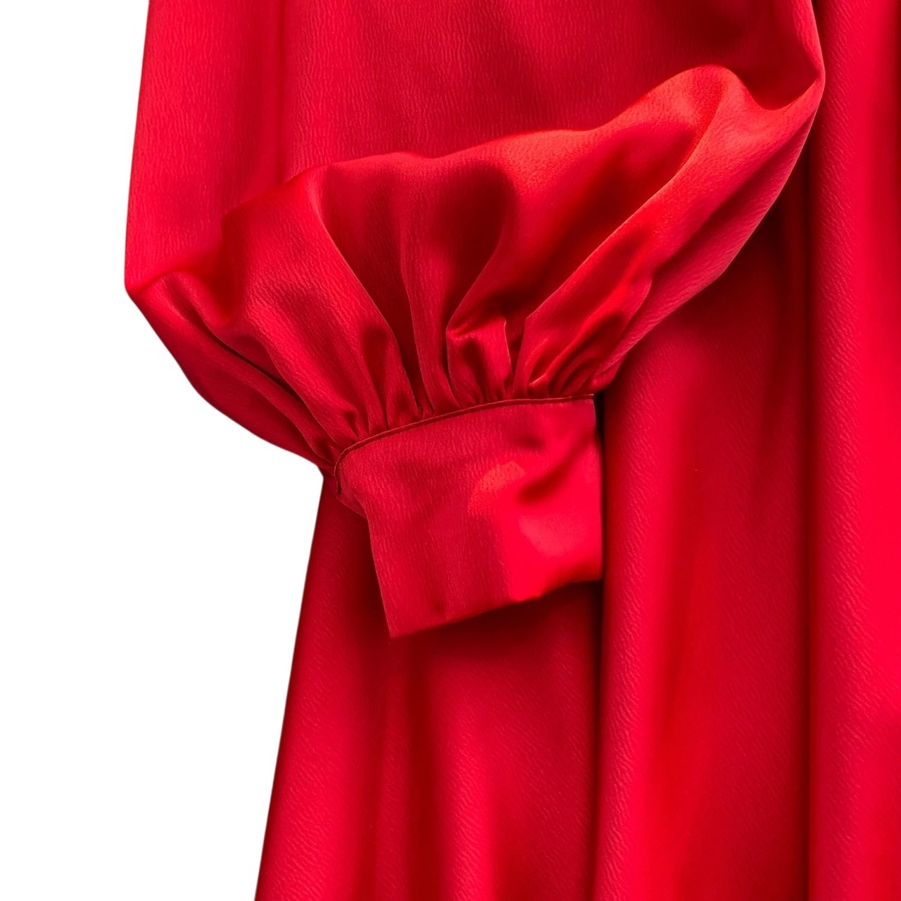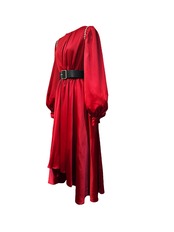 ■ディテール 厚手サテン/パフスリーブ/ビジュー/後ろ丈長め/ベルト/ジッパー/ポケット
