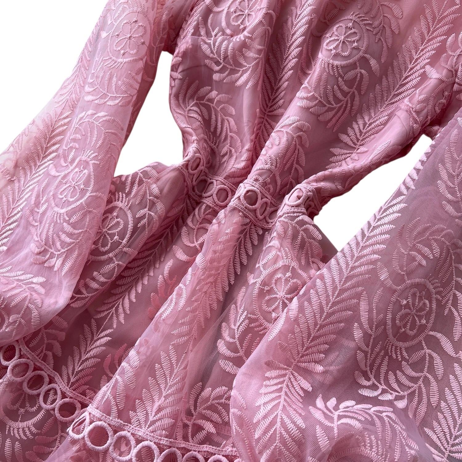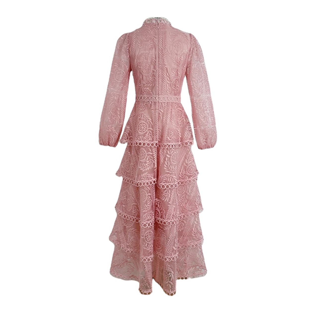 ■ディテール ロングワンピース/ティアードラッフル/エンブロイダリー/レース/ジッパー