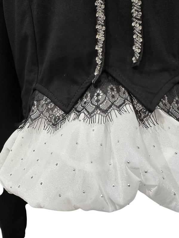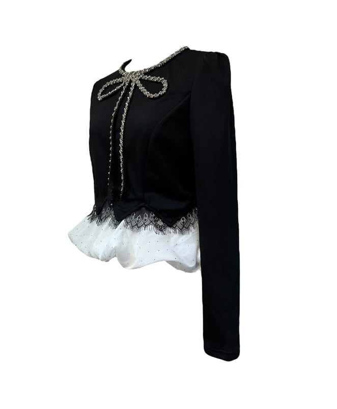 ■ディテール ビジューリボンのアップリケ/ペプラム/バルーンヘム/パフスリーブ/ジッパー