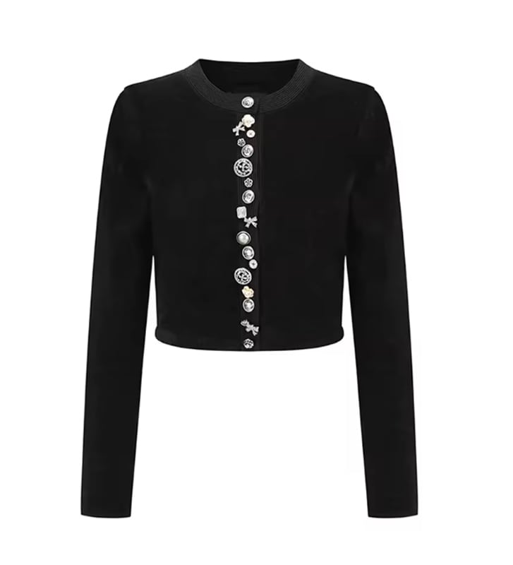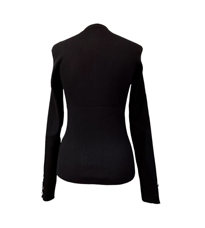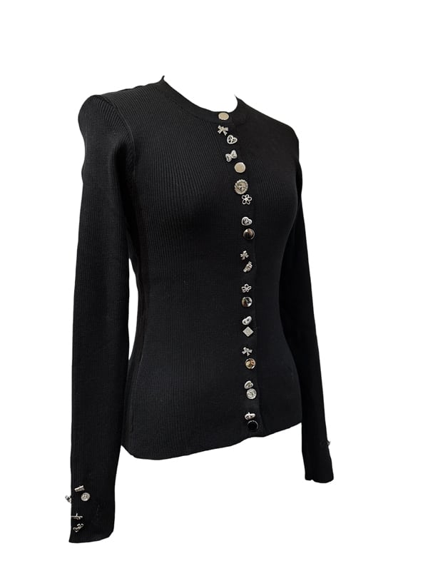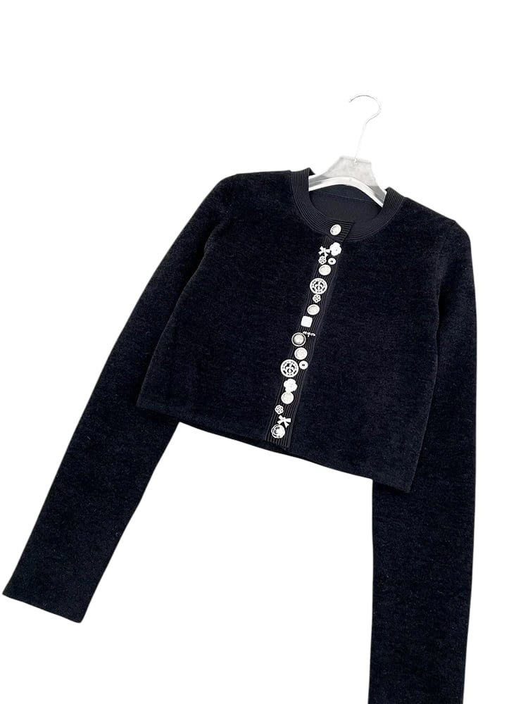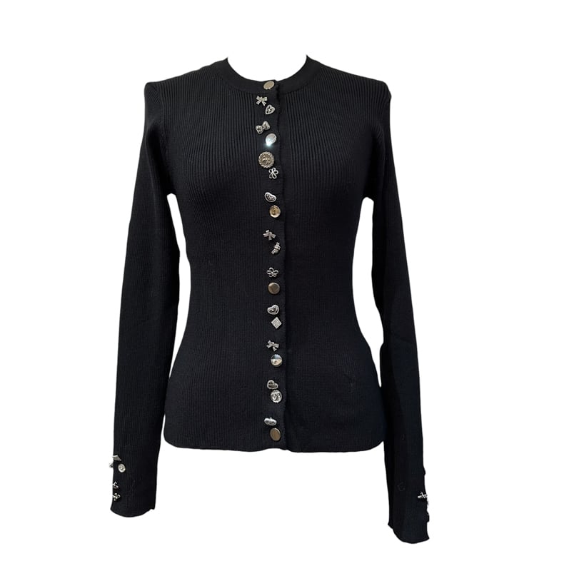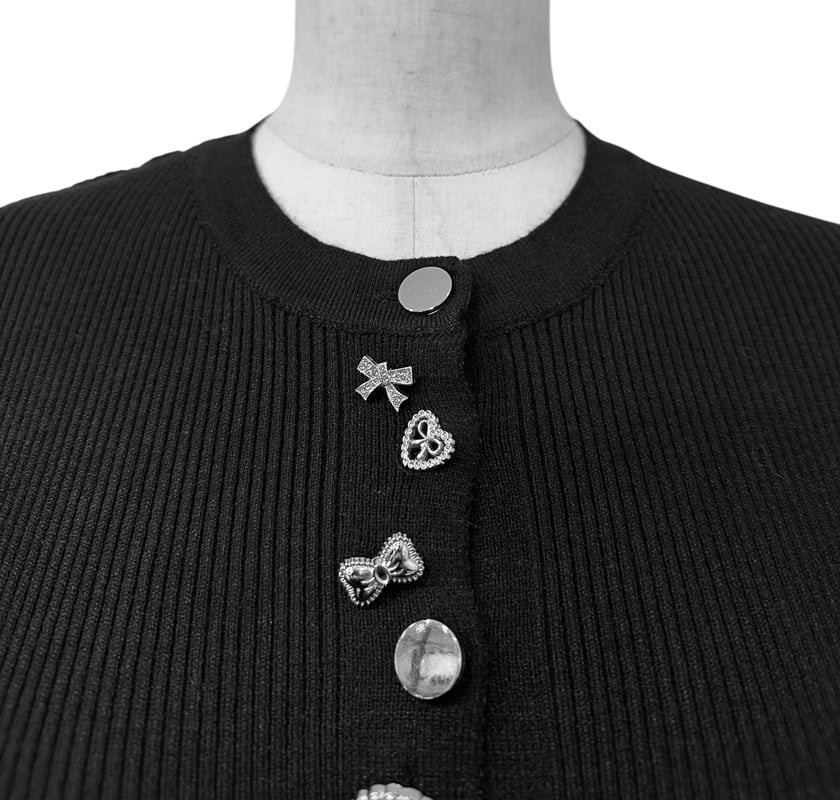 ■ディテール カーディガン/アシンメトリーなボタン/ビジューボタン/ストレッチ/リブニット