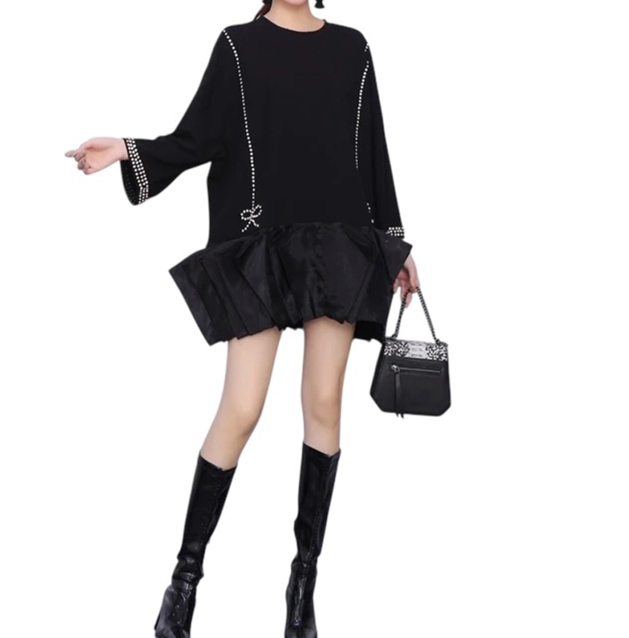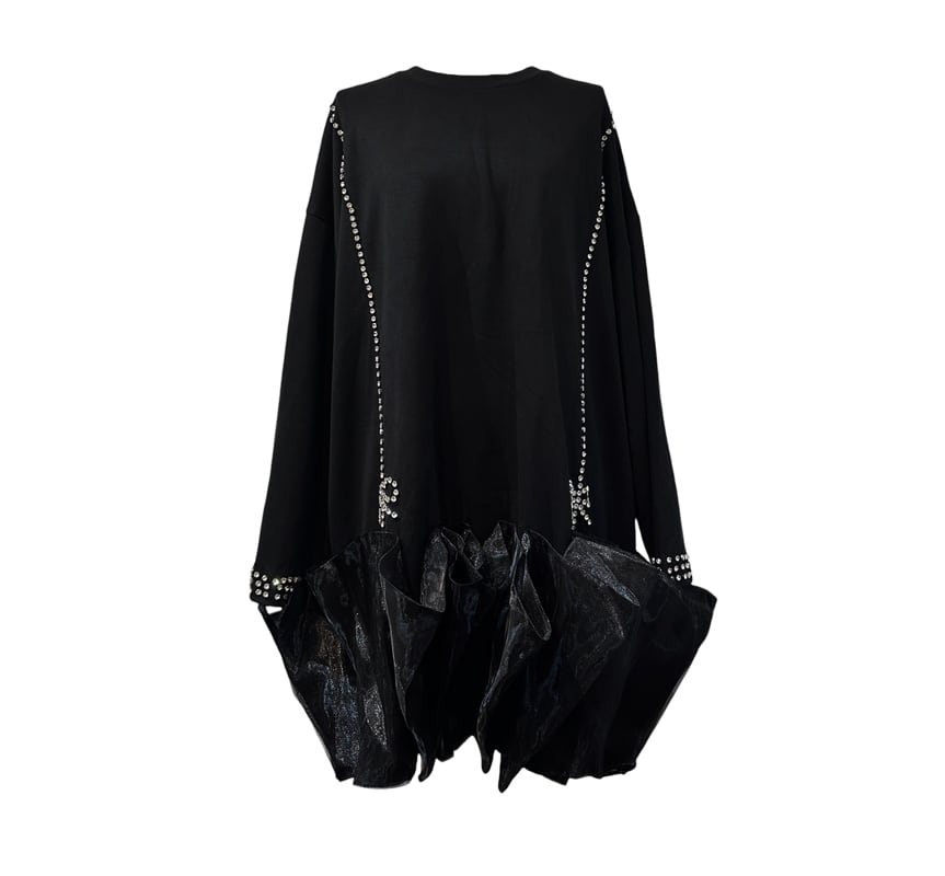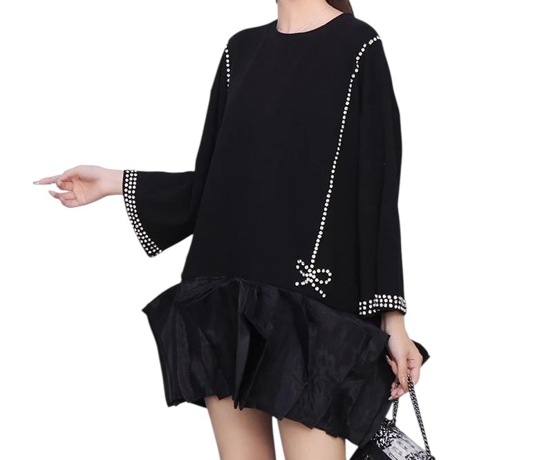 ■ディテール カットソー/ビジュー/プリーツラッフル/ワイドフィット/プルオーバー