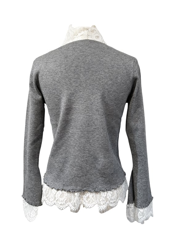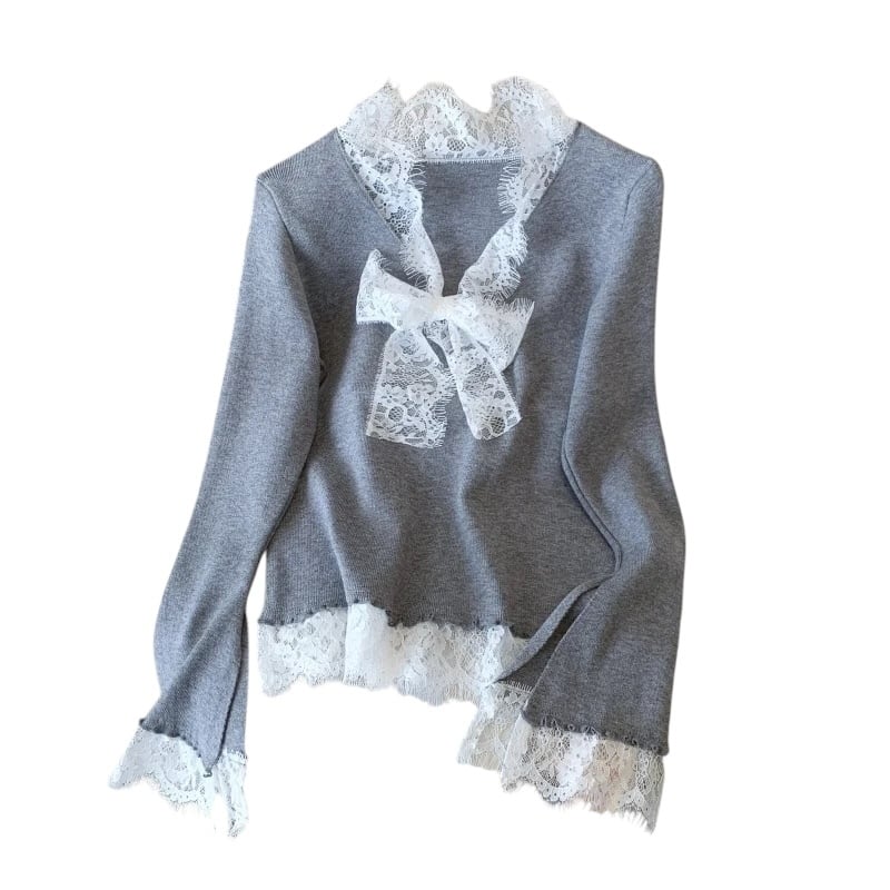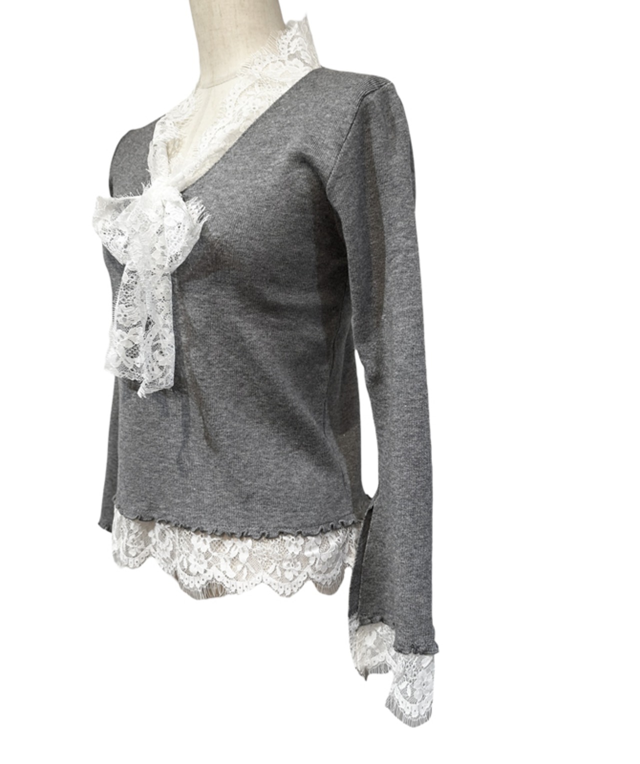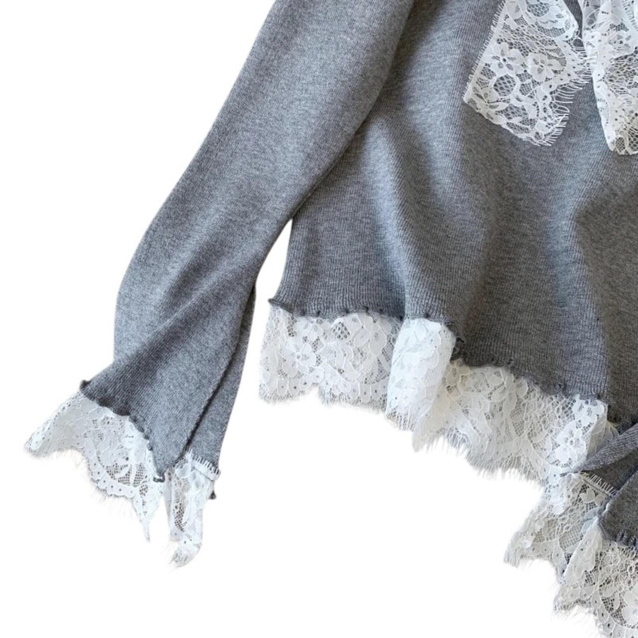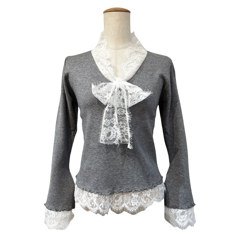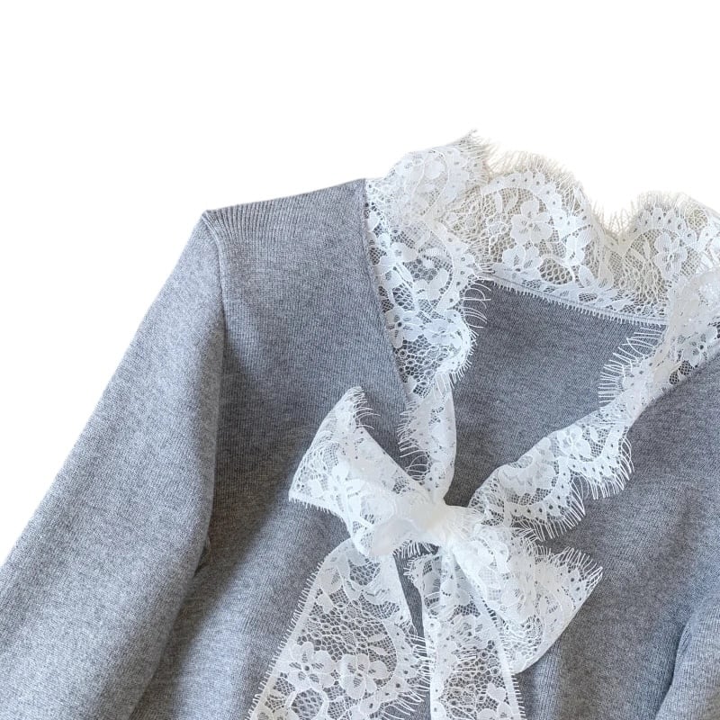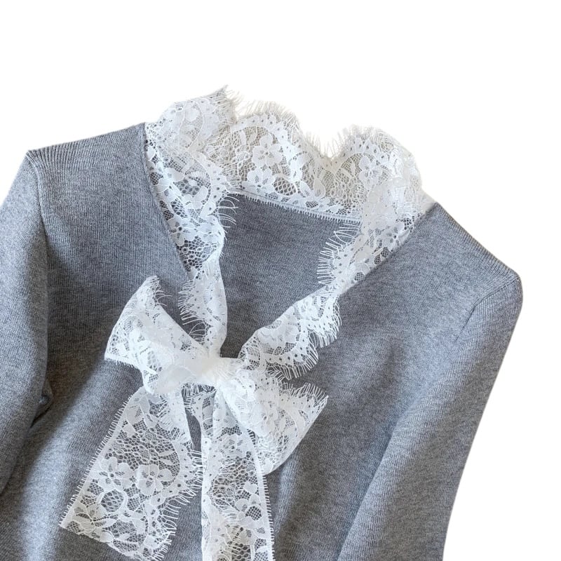 ■ディテール ハイゲージニット/ストレッチ/ベルスリーブ/レースボウタイ