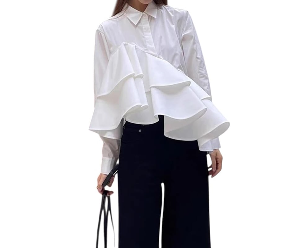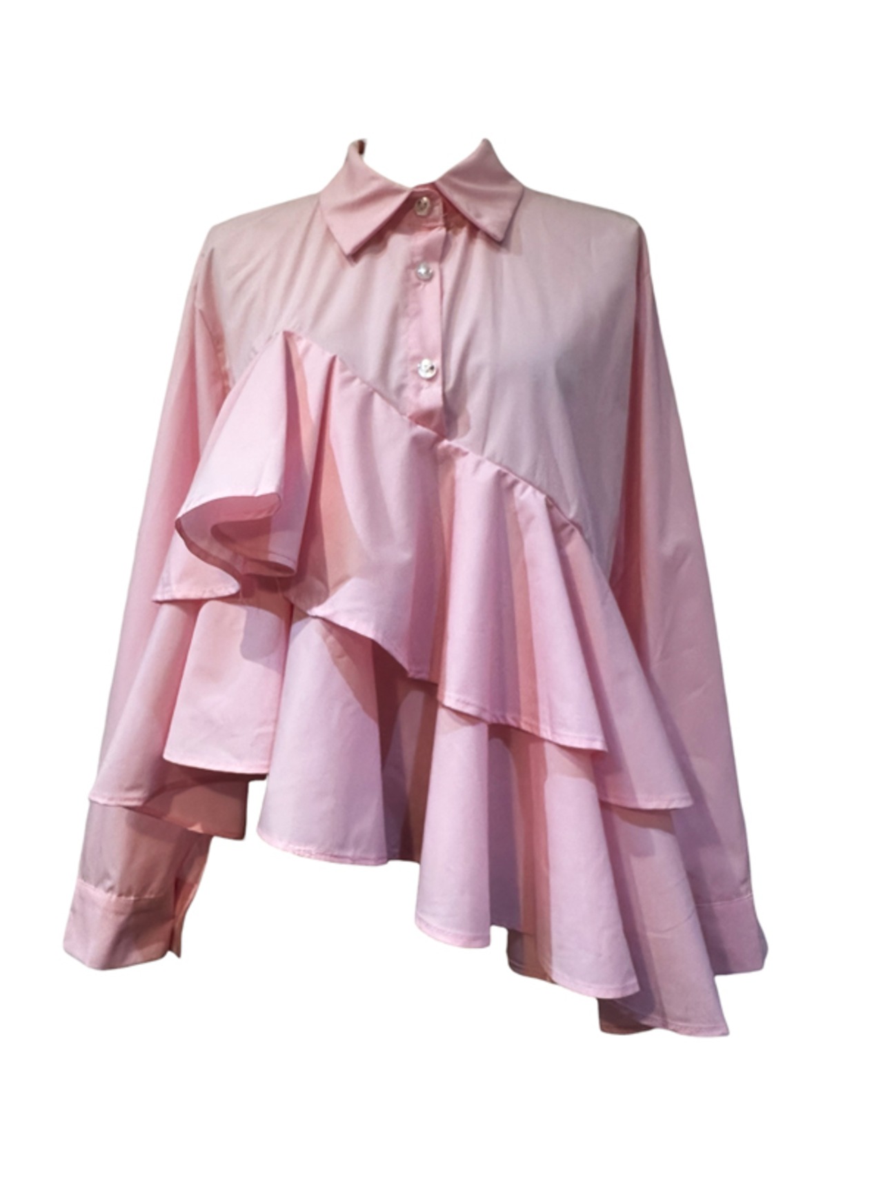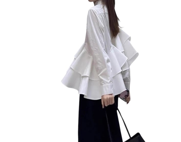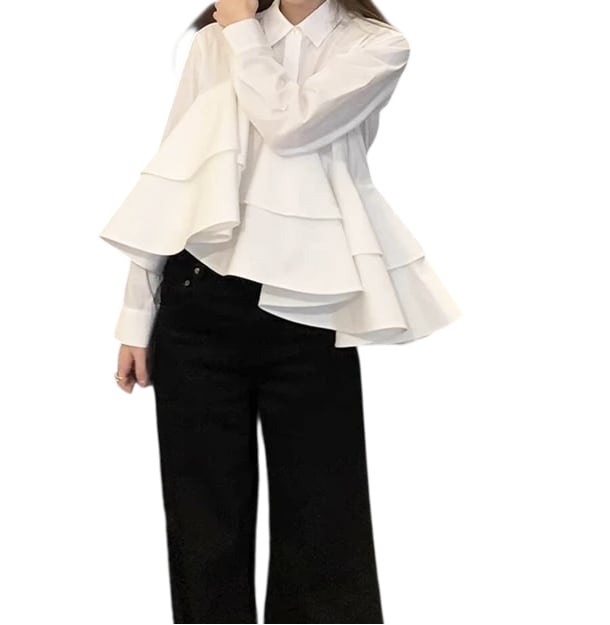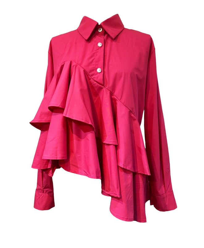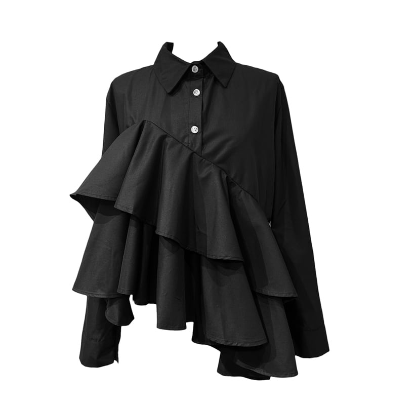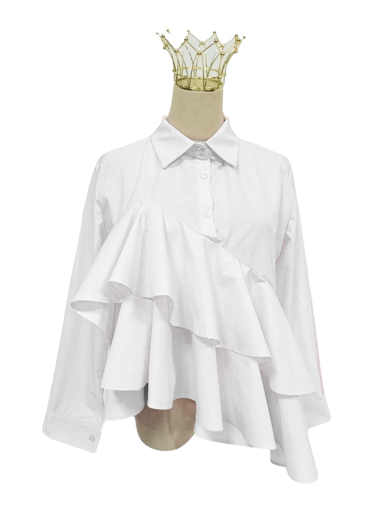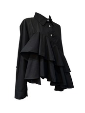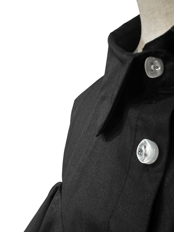 ■ディテール 張りのあるブロードクロス/アシンメトリーラッフル/クラシックカラー