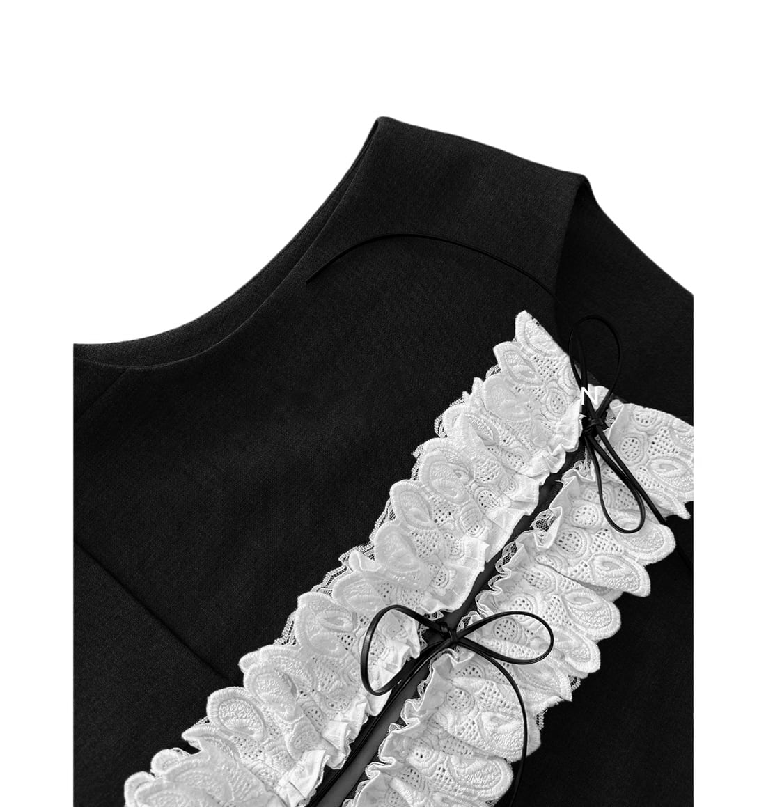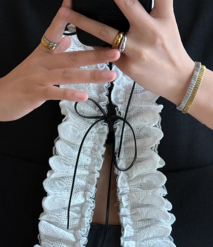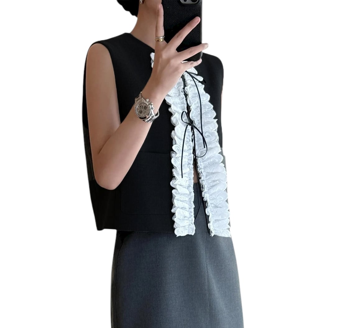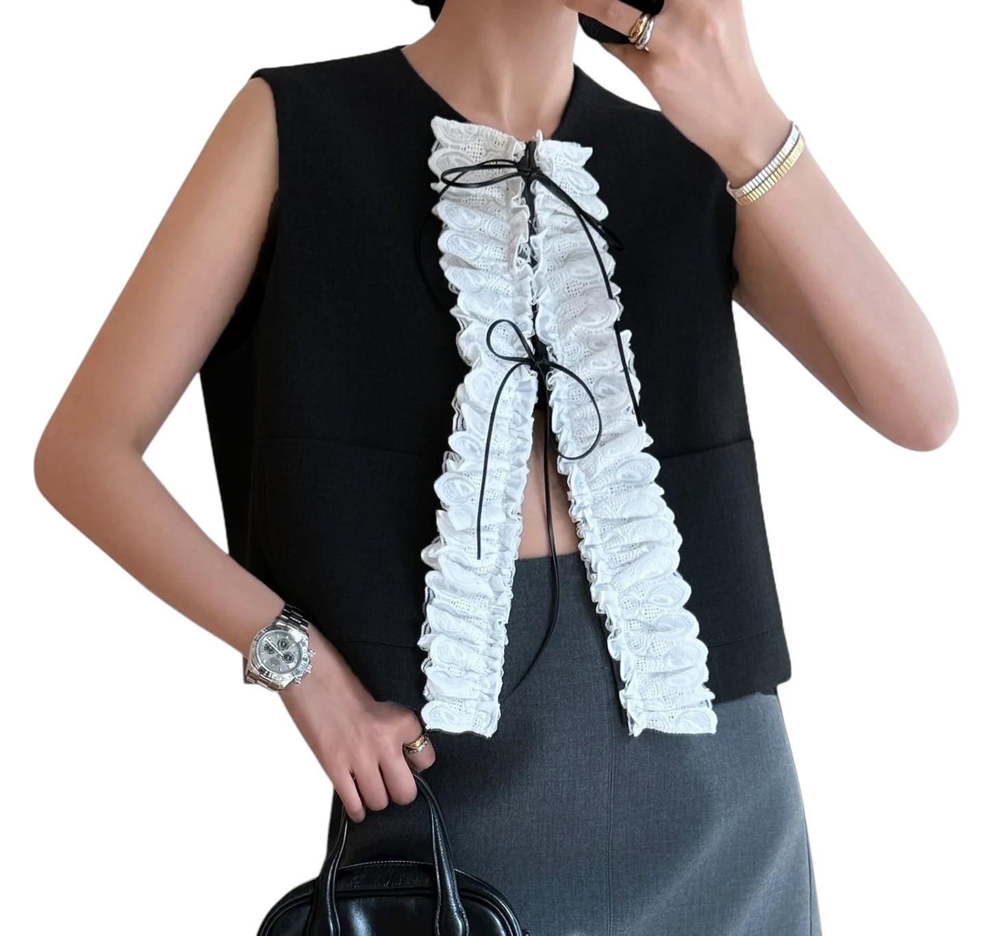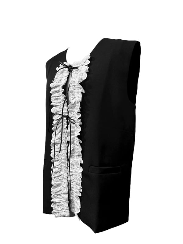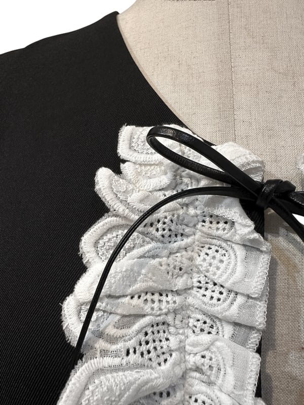 ■ディテール ワイドフィット/スーツベスト/フロントレース/PUレザーのリボン