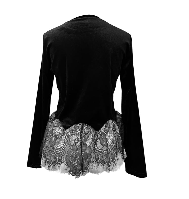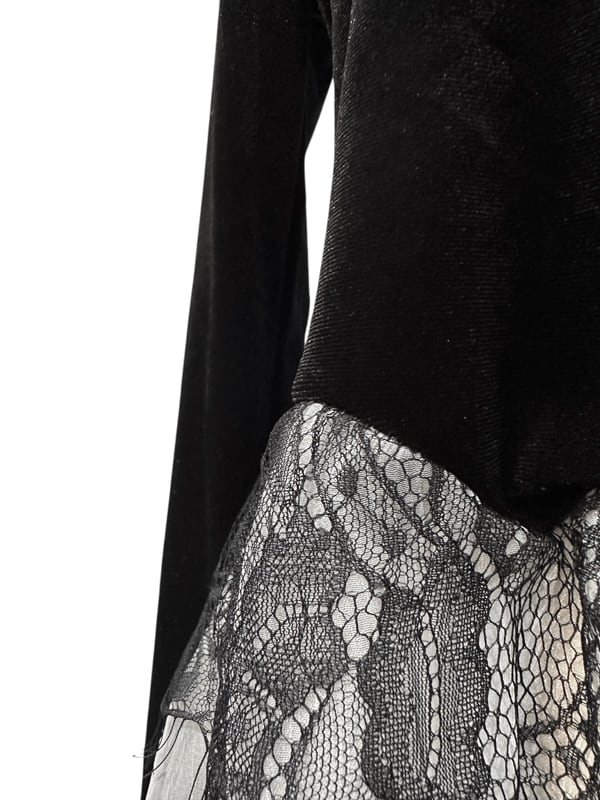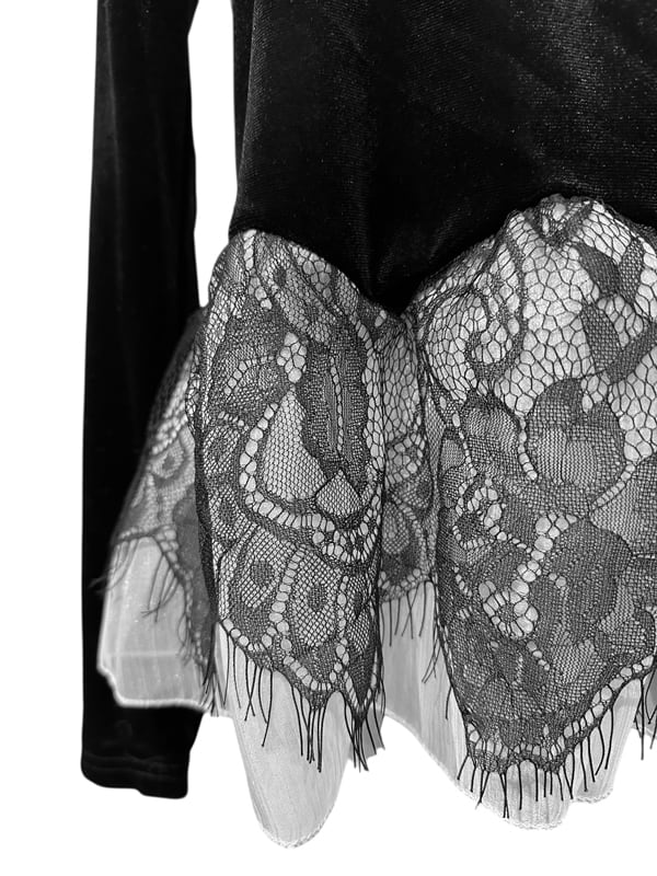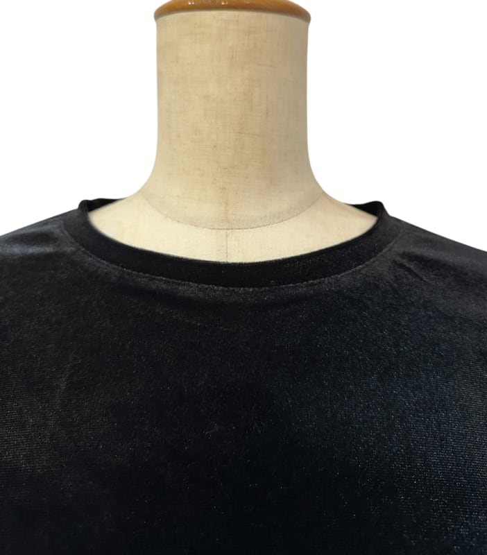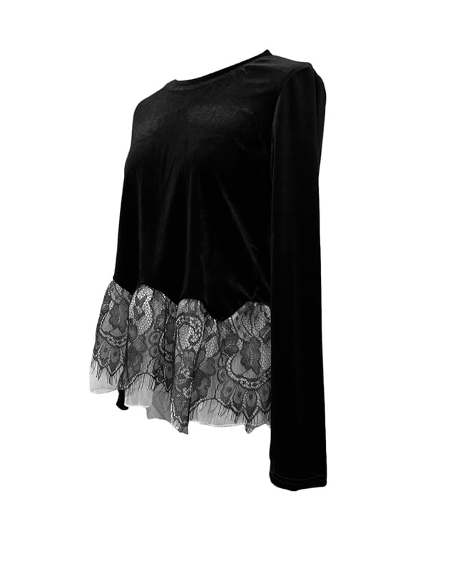 ■ディテール ベルベットTシャツ/カットソー/ストレッチ/メタリックシフォンとレースのレイヤード/プルオーバー