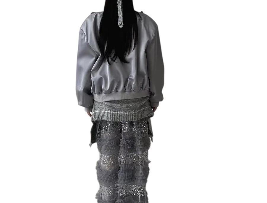 ■ディテール サテン/リブ切替/ラッフル/ワイドフィット/ジッパー/ポケット