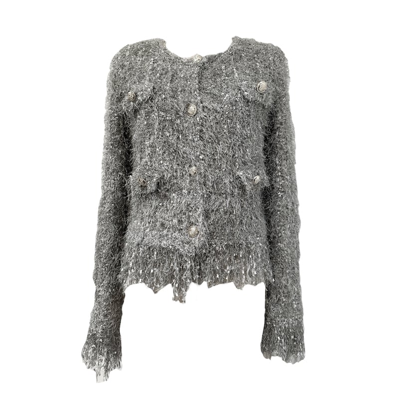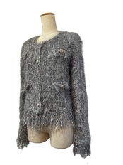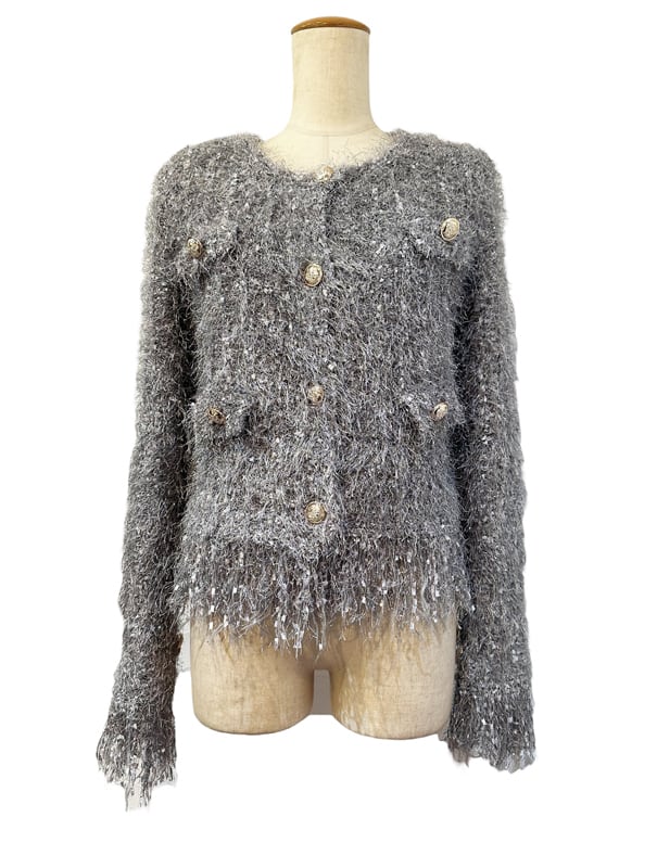 ■ディテール ミックスニット/メタルスレッド/ニットジャケット/フリンジ