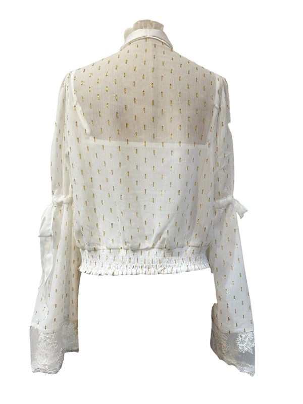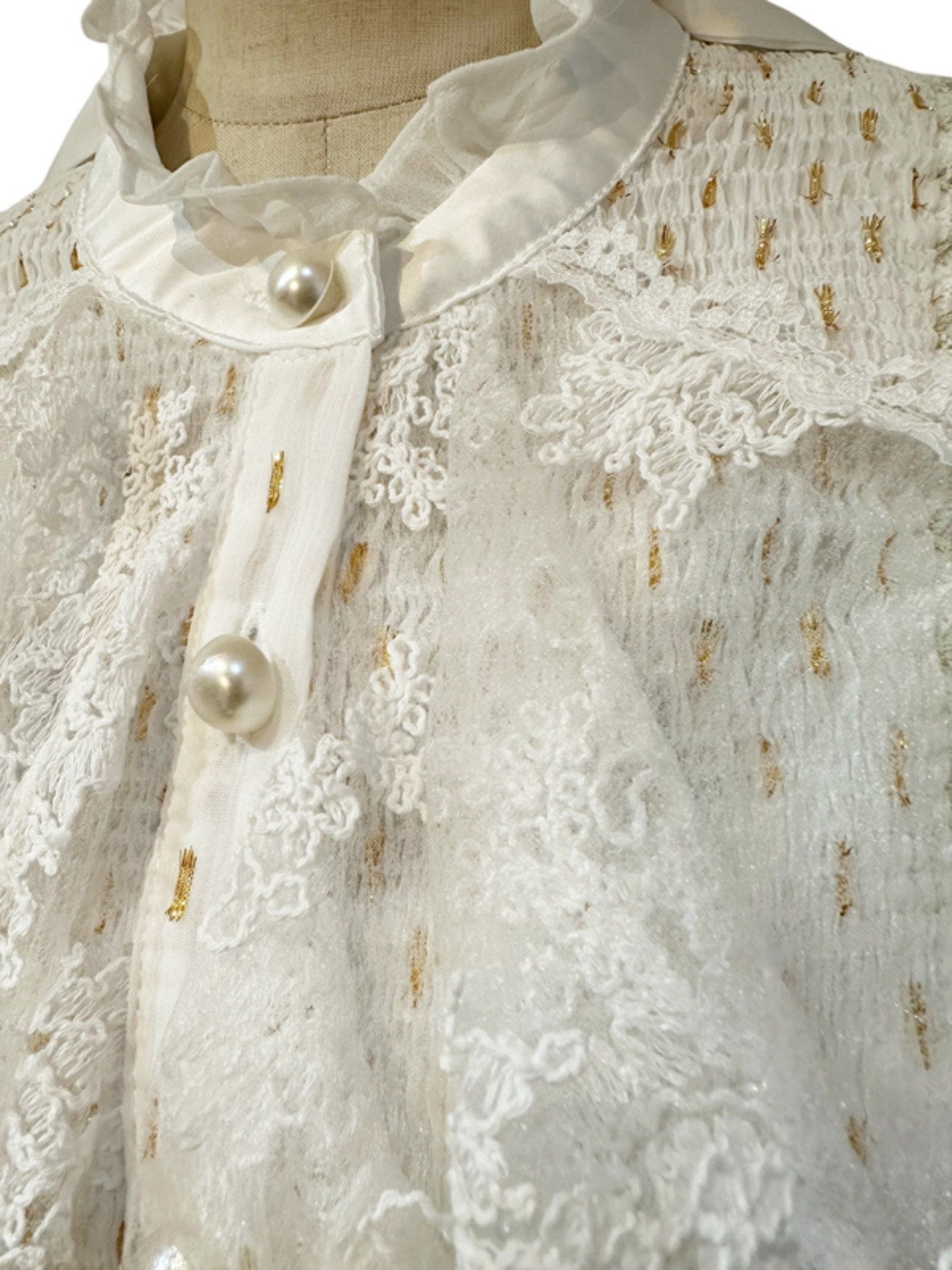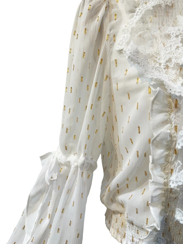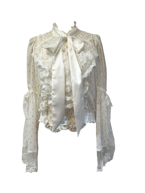 ■ディテール レースラッフル/サテンボウタイ/ウエストゴムのギャザー/ベルスリーブ/タキシード/インナーキャミソール