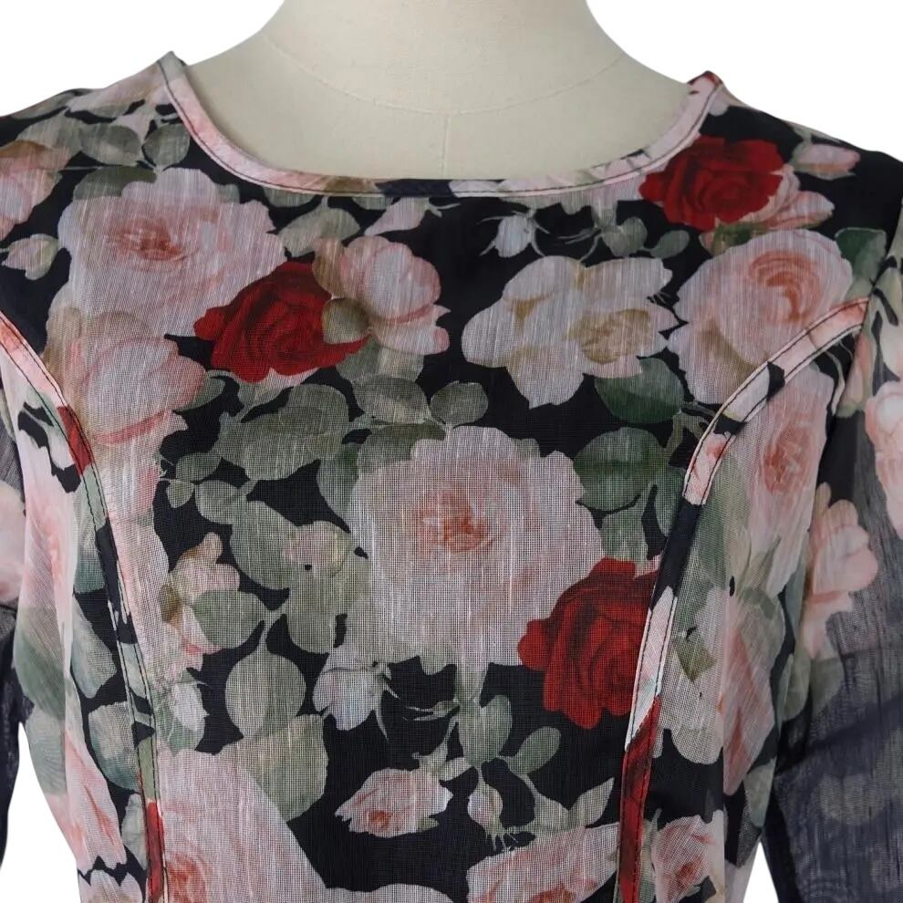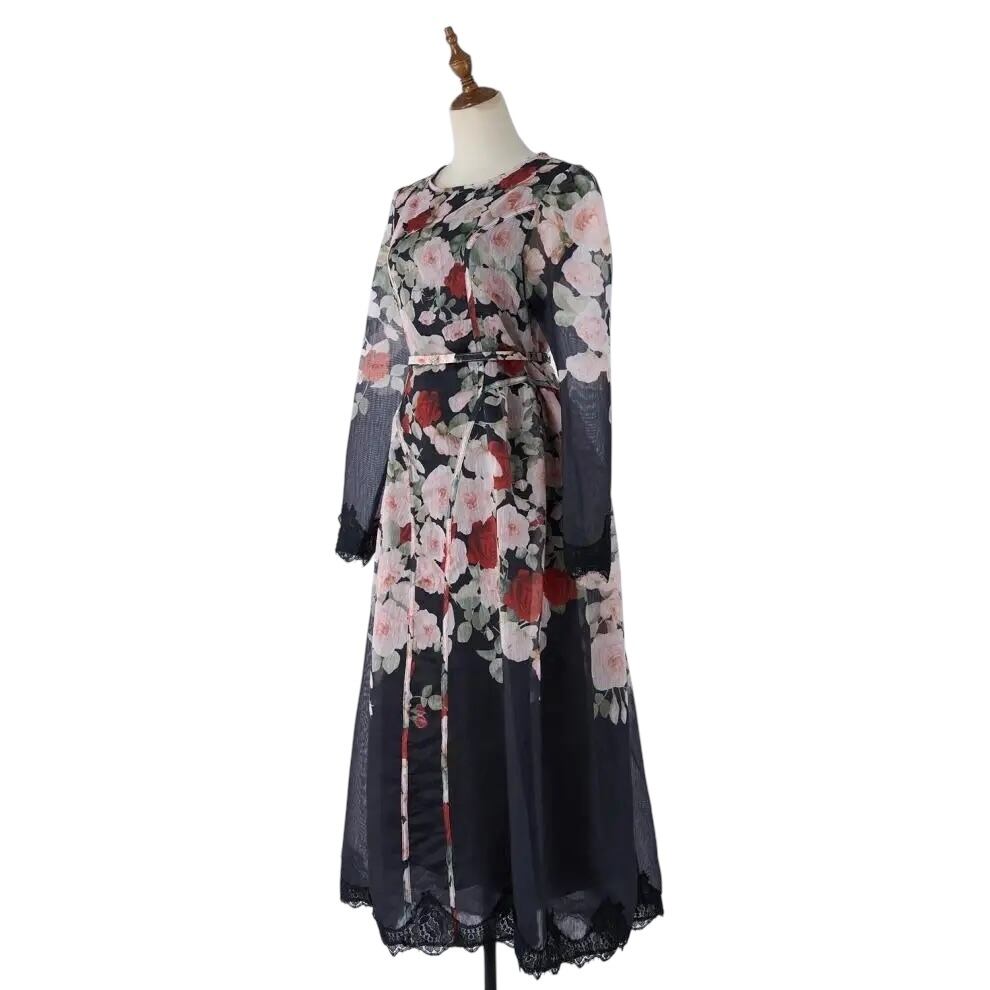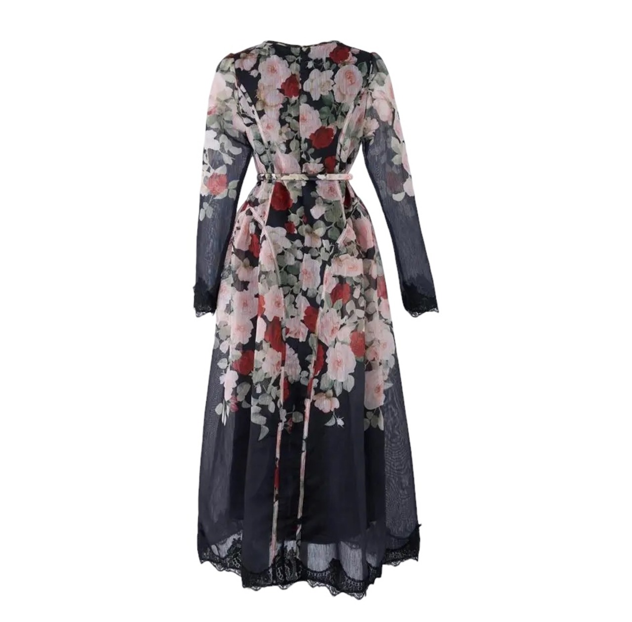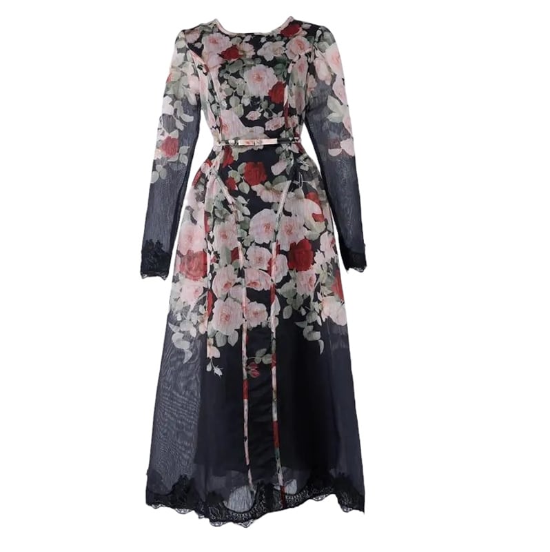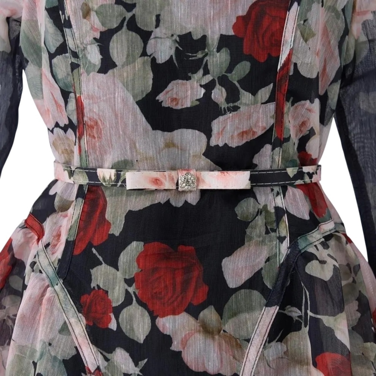 ■ディテール シアー/クルーネック/フラワーパターン/ベルト/レーストリム/インナードレス/ジッパー