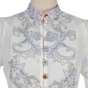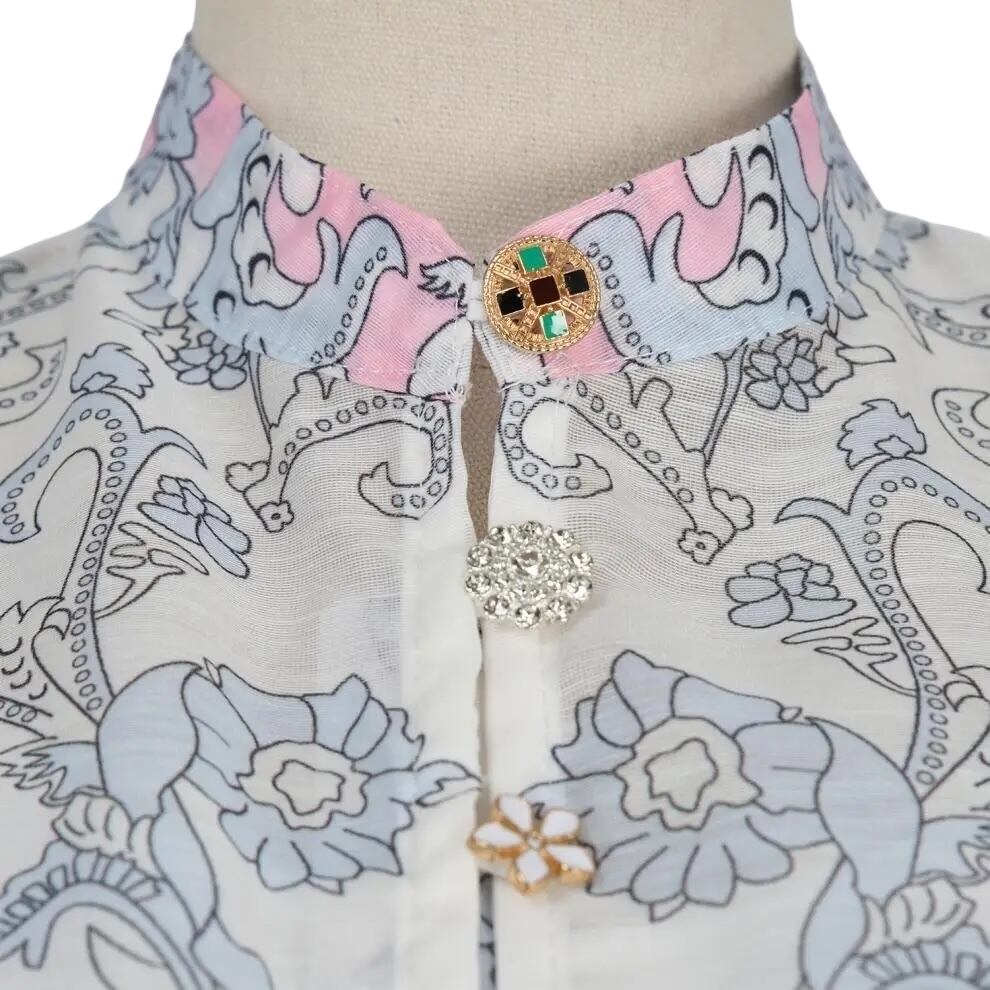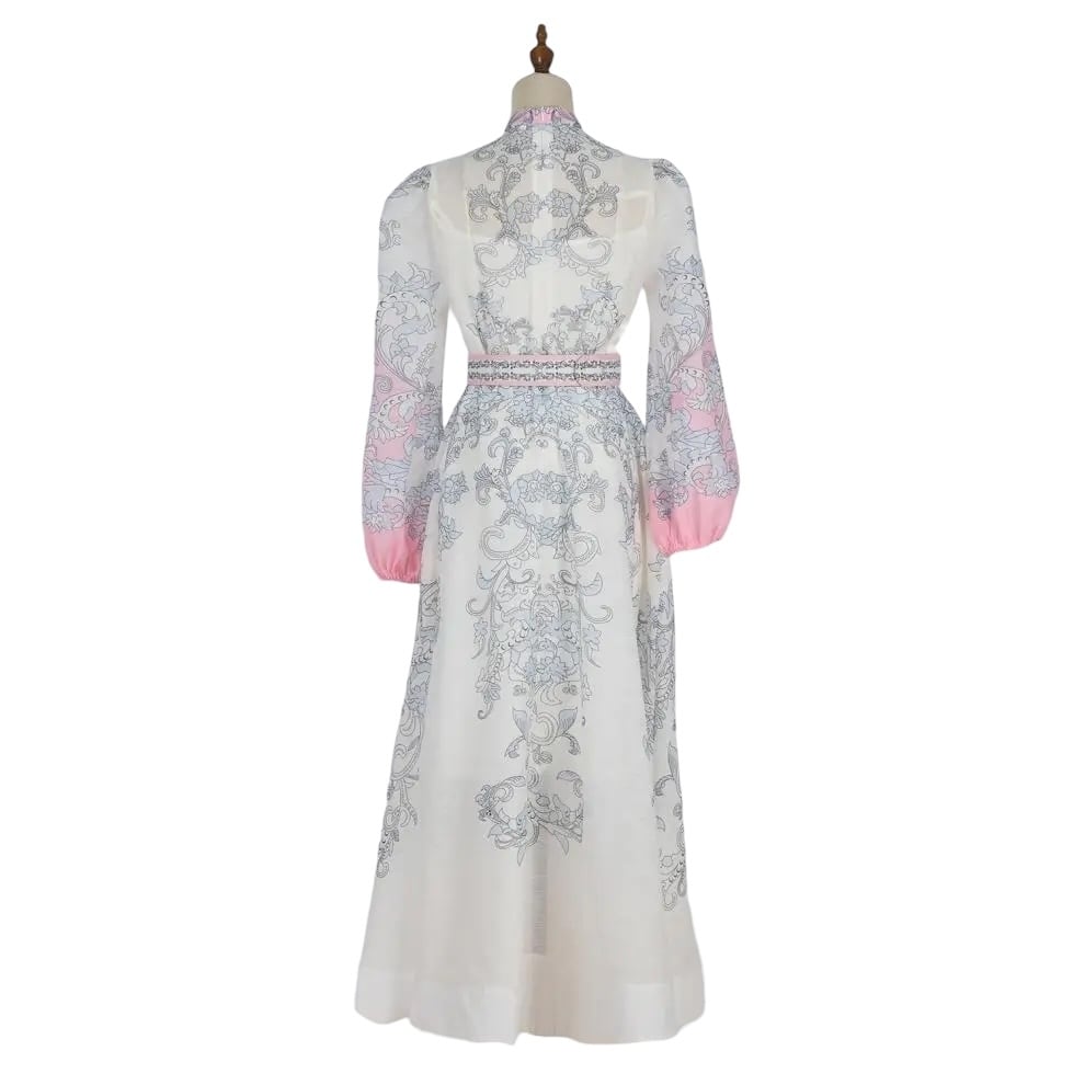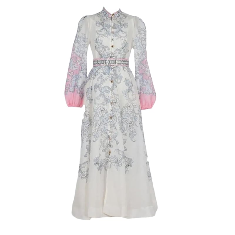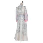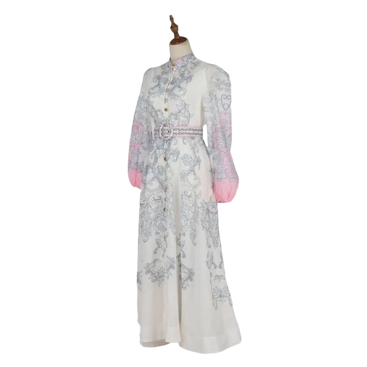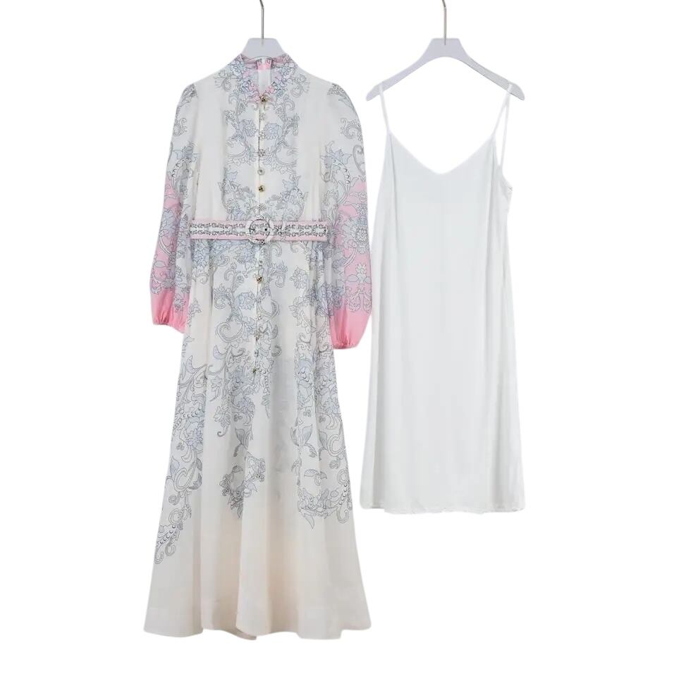 ■ディテール ロングワンピース/チャイニーズカラー/ジュエルボタン/パターン/ベルト/配色/インナードレス