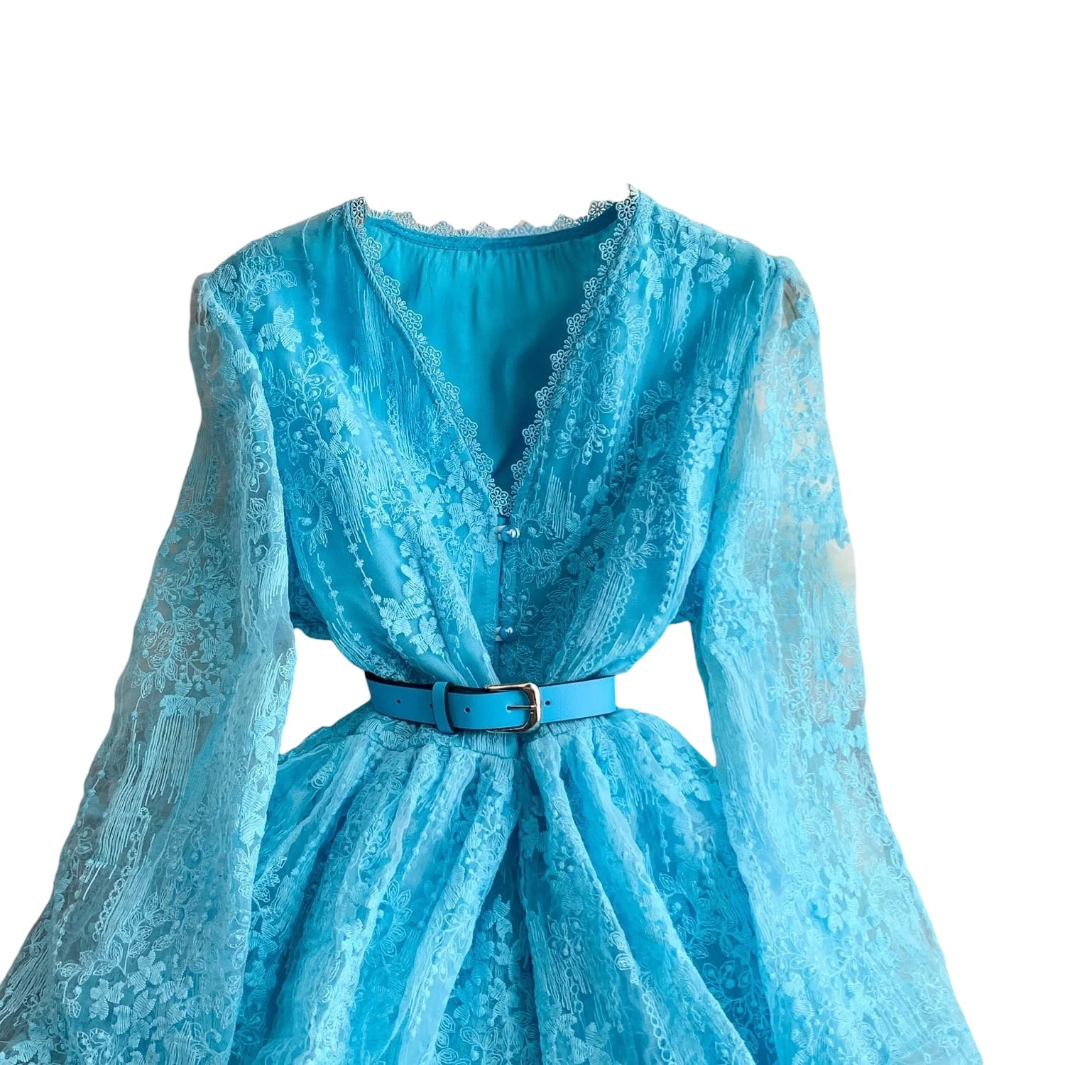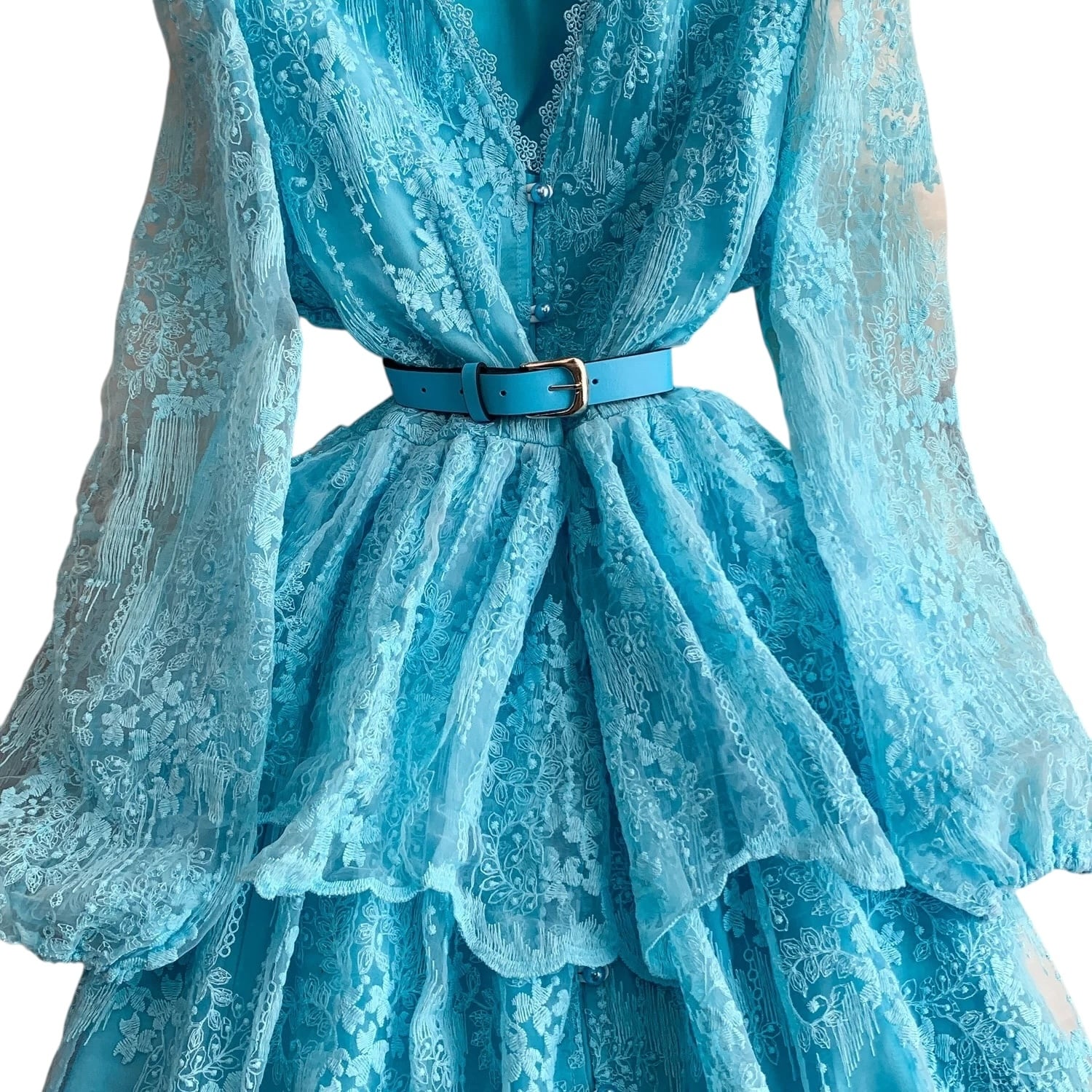 ■ディテール レイヤード/ベルト/レース刺繍/Vネック/ベルト/バルーンスリーブ