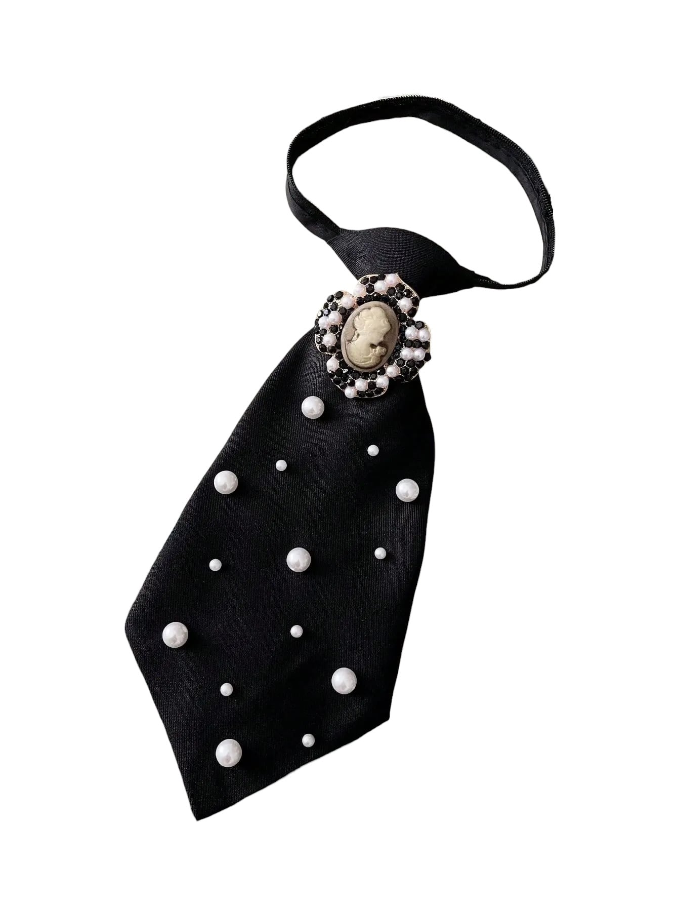 ■ディテール ネクタイ/カメオブローチ/パール装飾/ジッパー
