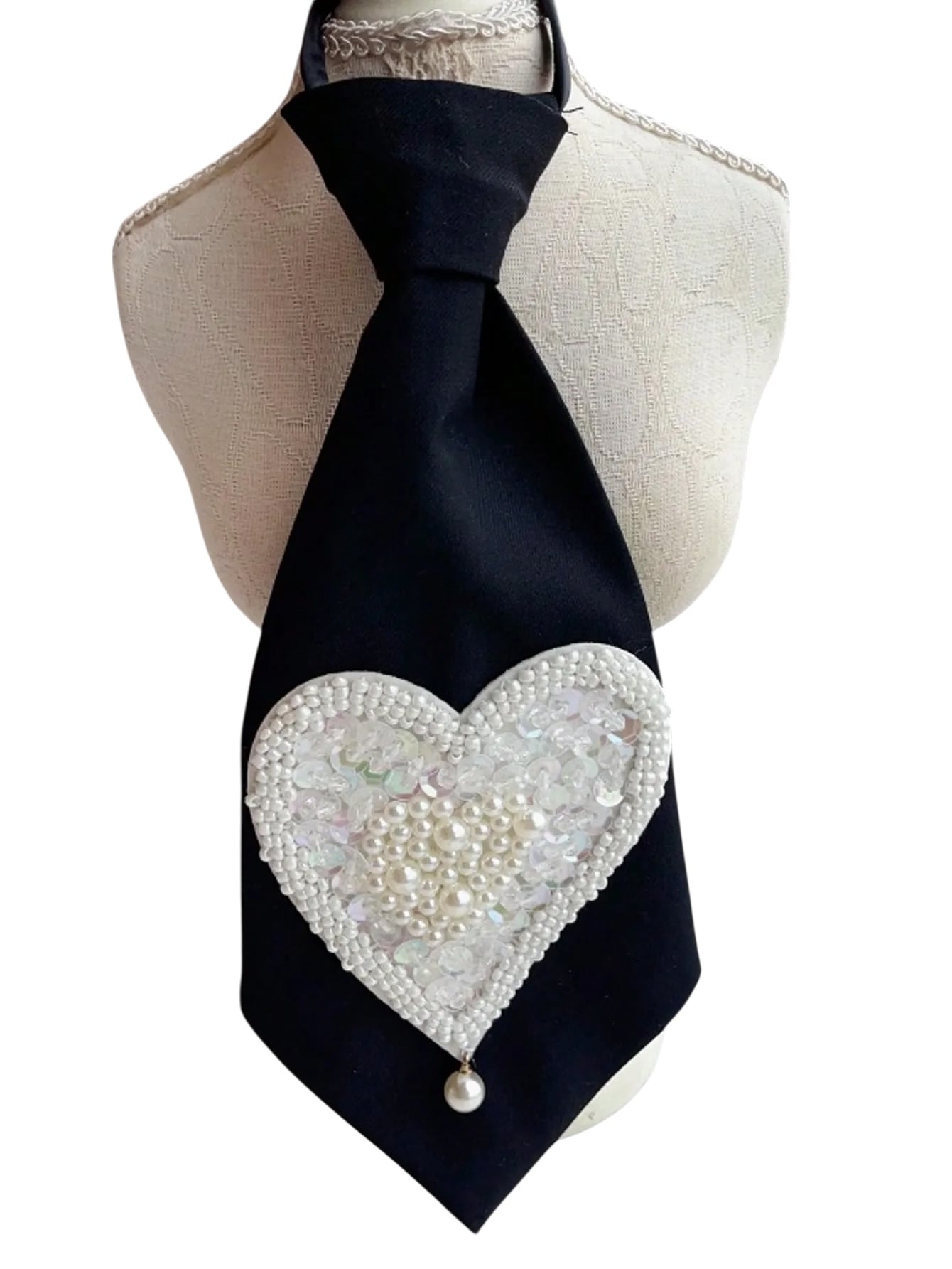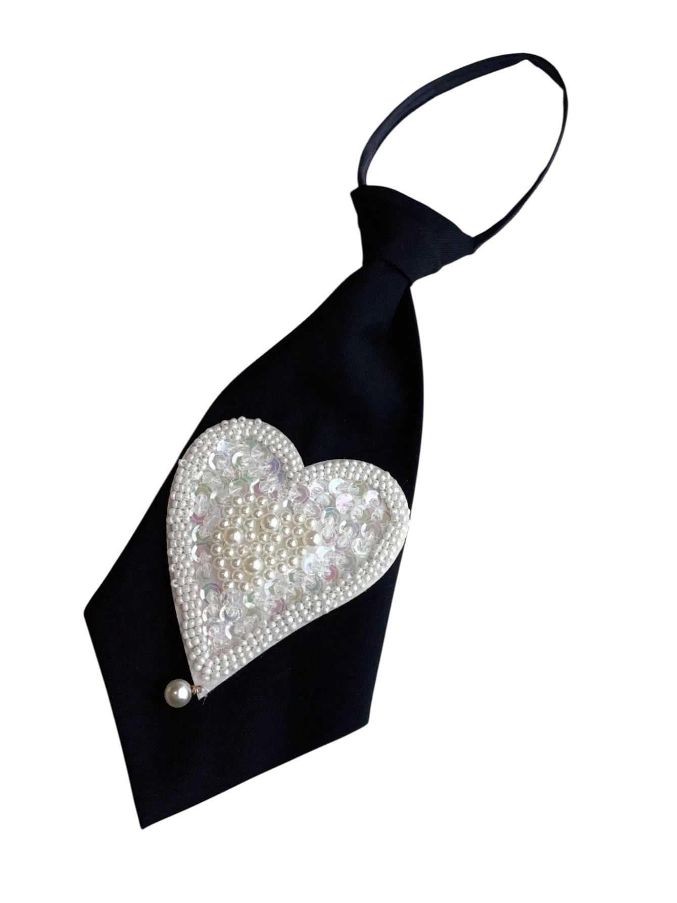 ■ディテール ネクタイ/ハートモチーフパール装飾/ジッパー