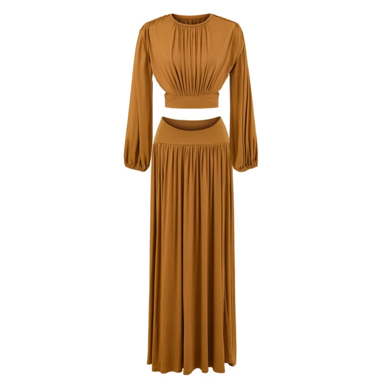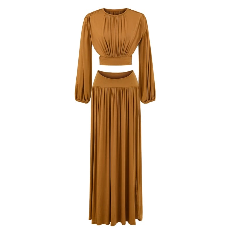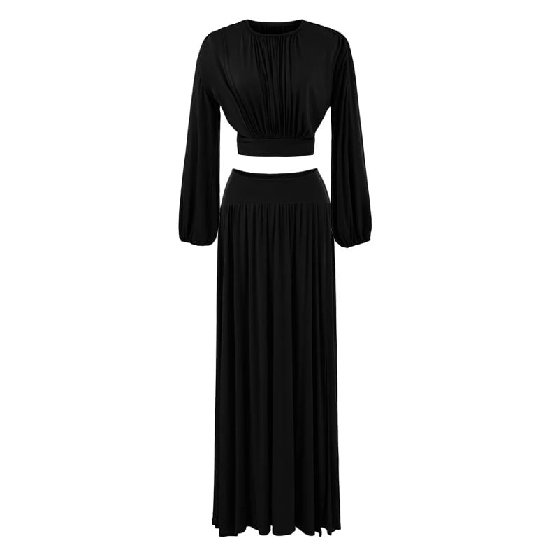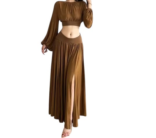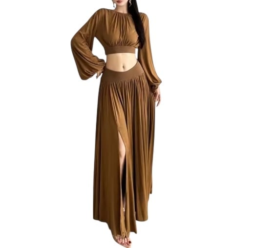 ■ディテール スカートセットアップ/レーヨンジャージー/クロップトップ/トップスクロージャー:サイドジッパー/スカートフロントスリット