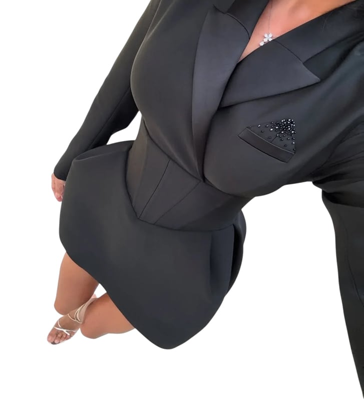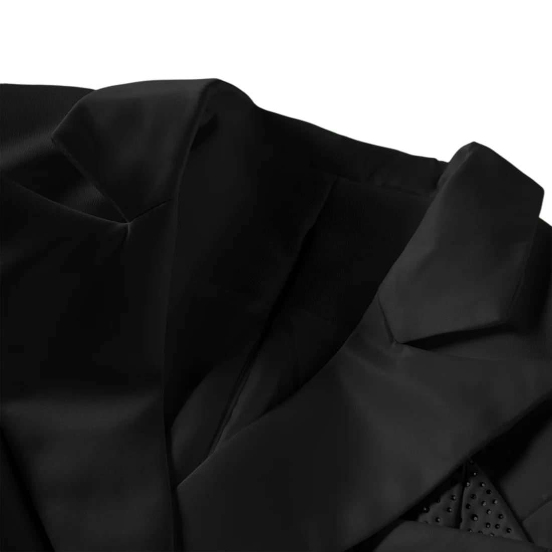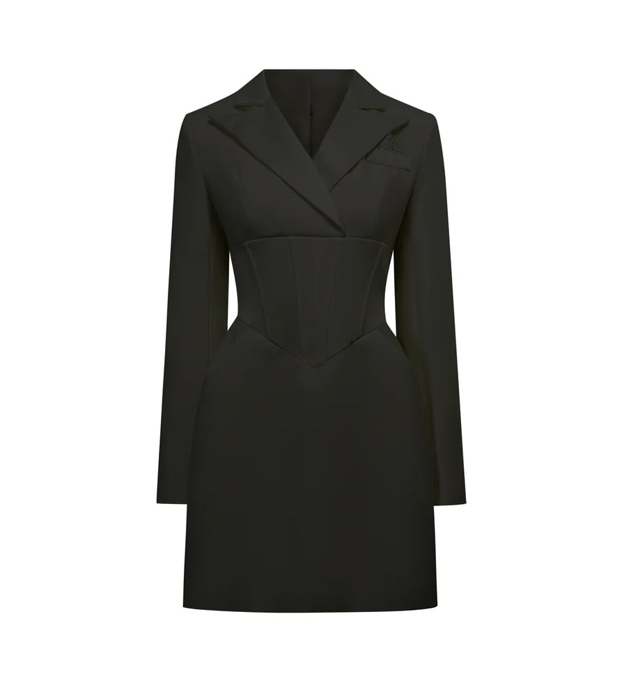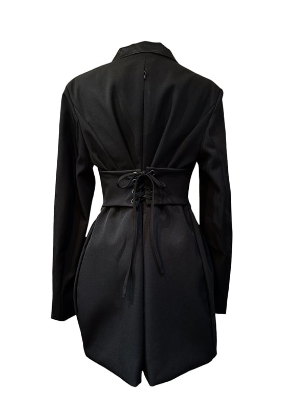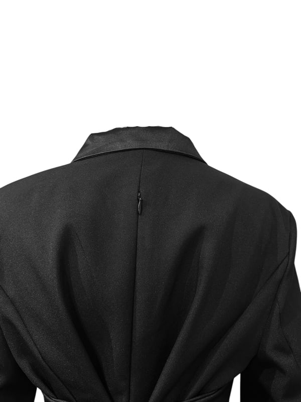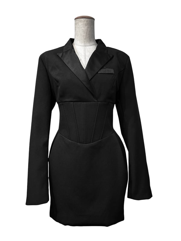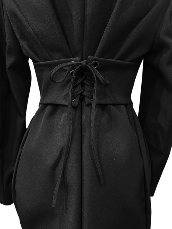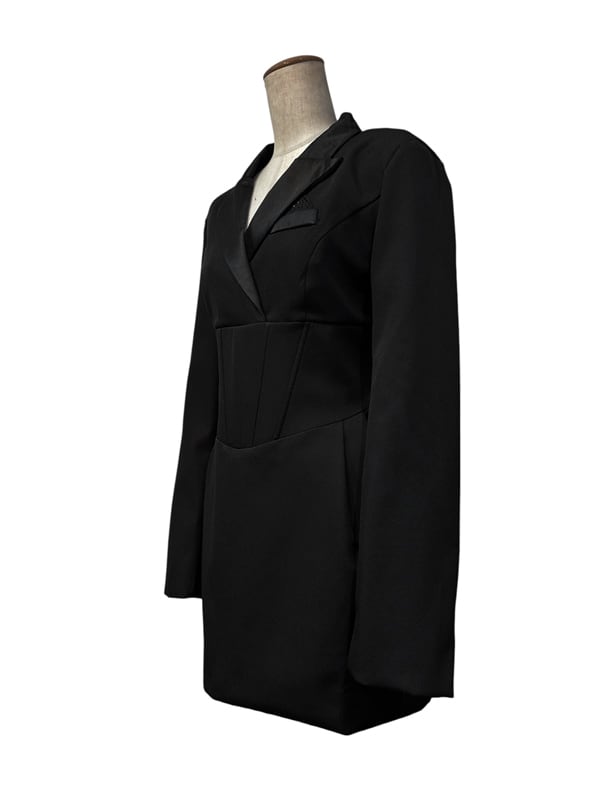 ■ディテール スモーキングジャケット/ジャケットドレス/サテンの襟/コクーンシルエット/バックジッパー/レースアップ/コルセット風デザイン
