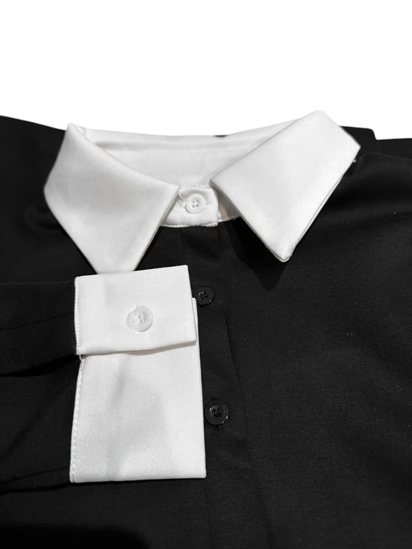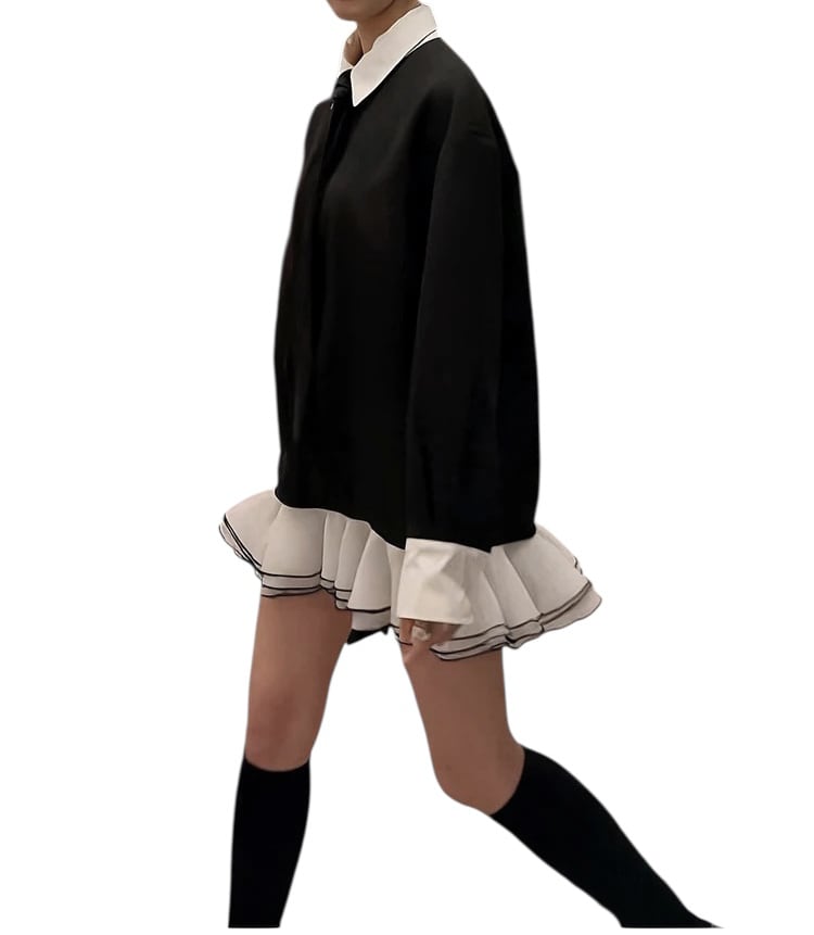 ■ディテール 配色/柔らかなボンディング風スウェット素材/ラッフル/ネクタイ/ワイドフィット