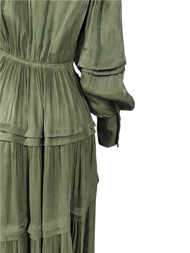 ■ディテール メタリック/ボリュームスリーブ/ティアード/Vネック/ウエストゴムのギャザー/プルオーバー/フルレングスの裏地あり