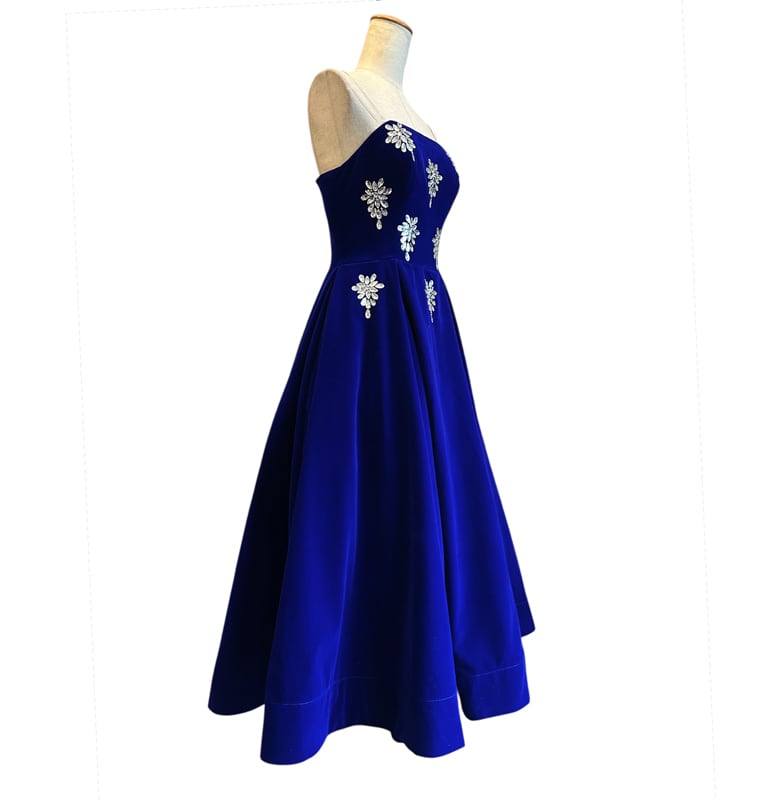 ■ディテール ビスチェドレス/ベルベット/ビジュー装飾/エンブロイダリー/内側にパニエ/サテンの裏地/ジッパー