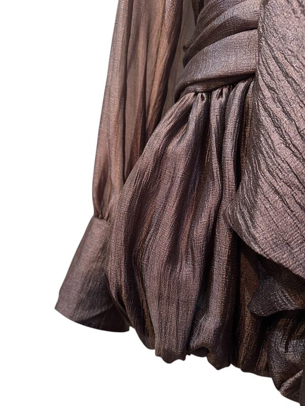 ■ディテール チュニック/メタリック/ボウタイ/バルーンヘム/裾の内側にパニエ/サイドジッパー