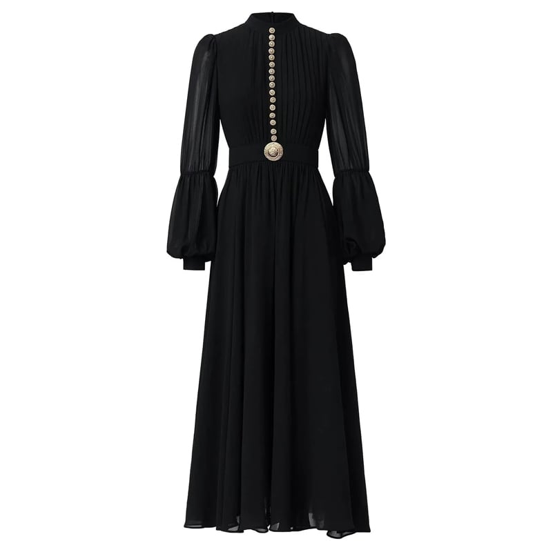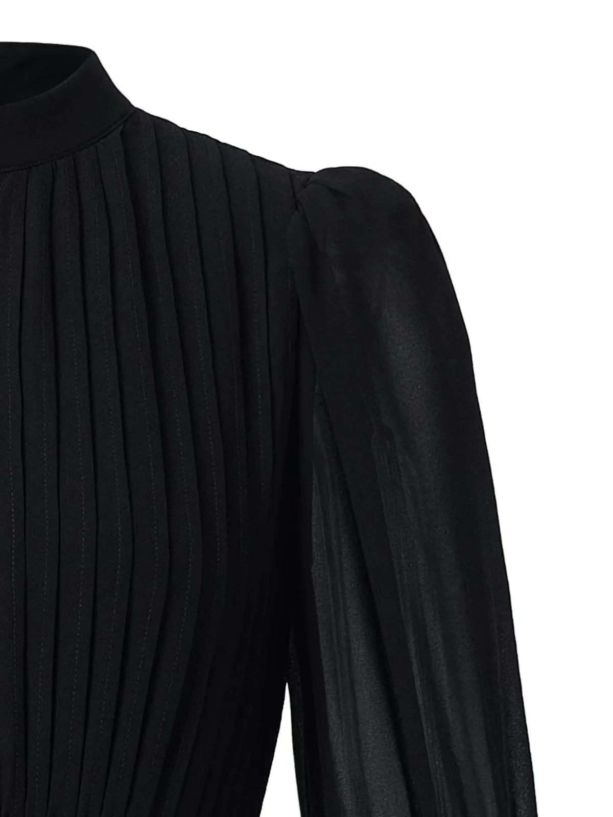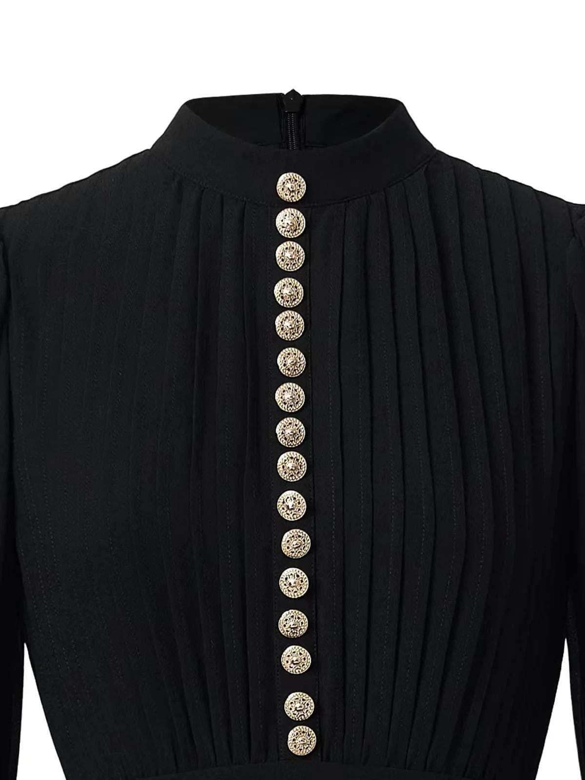 ■ディテール 薄手/シフォン/スタンドカラー/メタルボタン/バルーンスリーブ/ジッパー/裏地