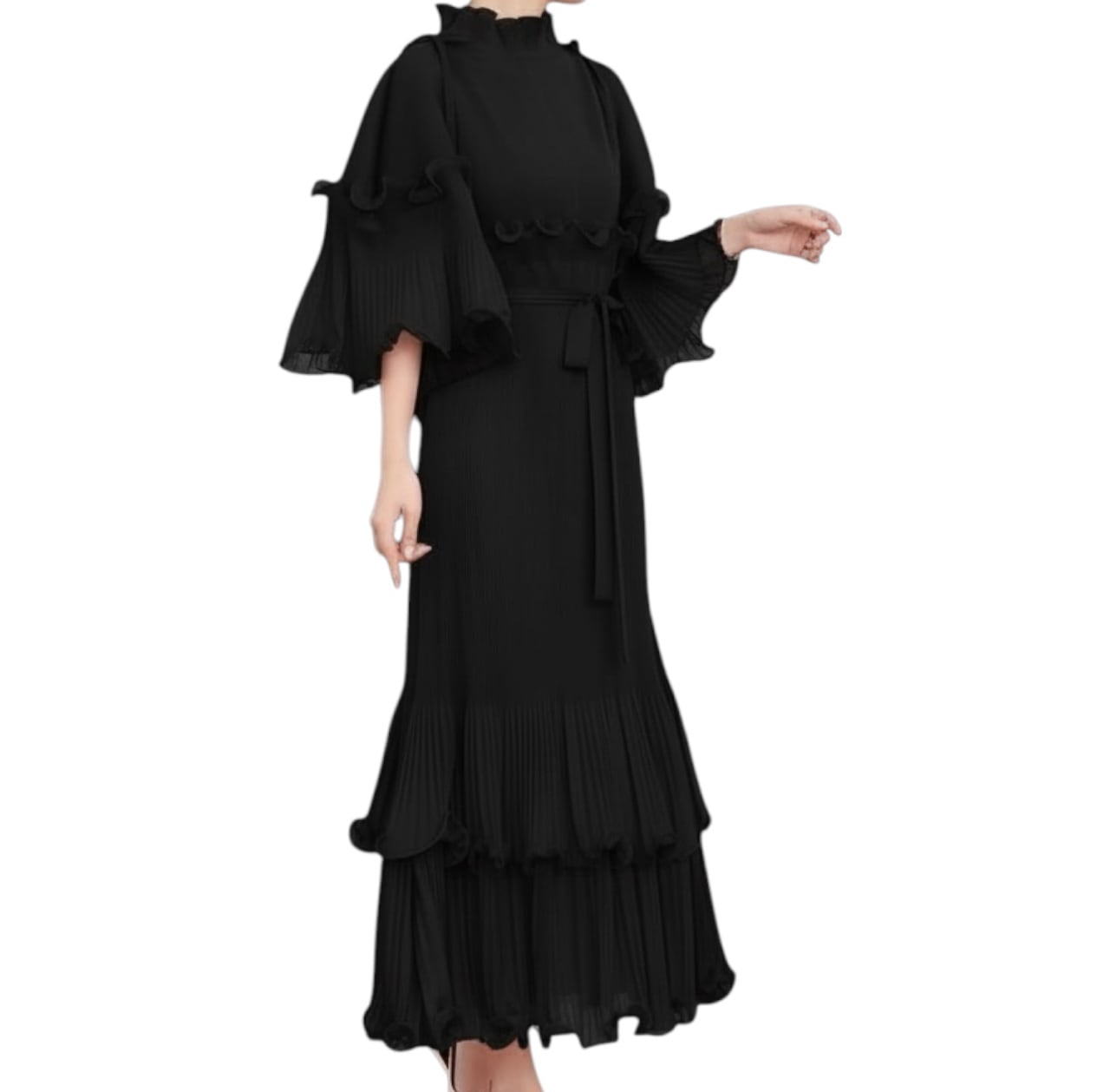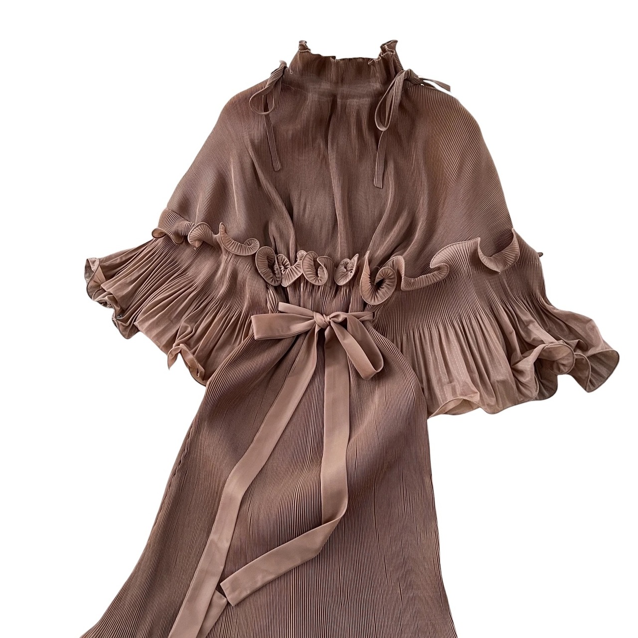 ■ディテール プリーツドレス/ラッフル/モックネック/プルオーバー/裏地無し
