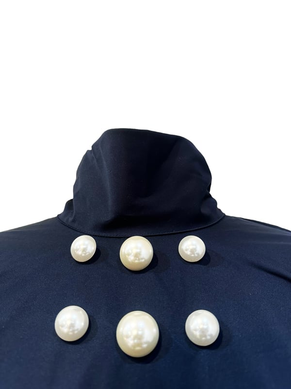■ディテール パールデコレーション/ボウタイ/スタンドカラー/ボリュームスリーブ/ワイドフィット